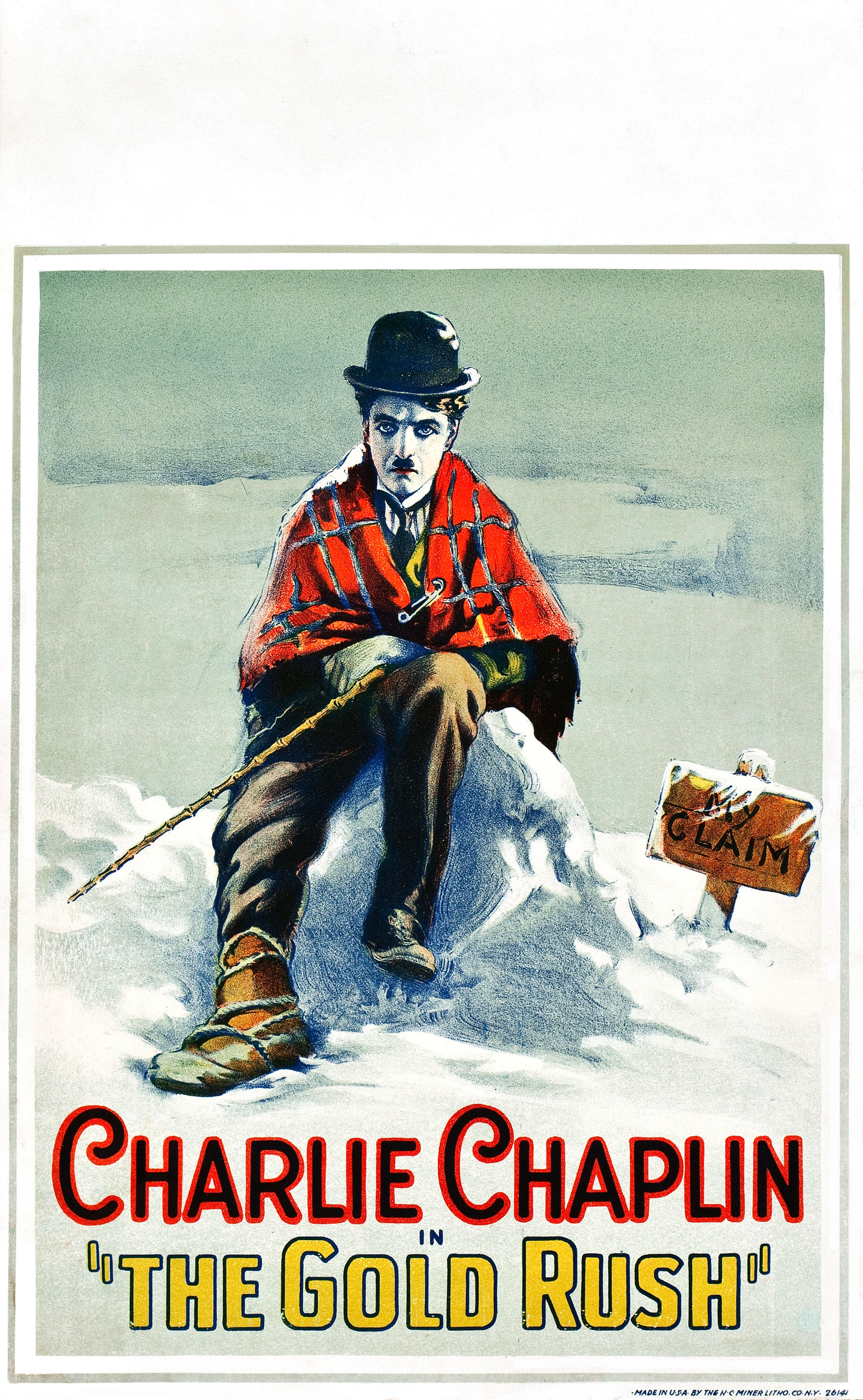 На волне золотой лихорадки наш герой, как и многие в то время, отправляется на Аляску попытать счастья. На золотоискателя он, конечно, абсолютно не похож — эта трость, эта шляпа… Может просто счастье, которое все кинулись искать на эти снежные горы, для него совсем не в деньгах?