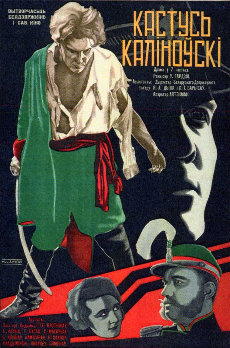 Кастусь Калиновский предстает в образе борца за свободу и благополучия тех, кто сам это сделать не может. Он выступает на стороне крестьян и ведет за собой значительную часть местной шляхты, тех, кого не устраивают имперские порядки. В фильме он герой, он тот, кто готов отдать жизнь за других. Что же там было на самом деле уже никто не скажет. Однако стоит отметить, что роль Калиновского в белорусской истории значительна. Актерская игра оказалась достойной всяких похвал. Немое кино имеет определенную специфику и, сами понимаете, необходимы навыки, чтобы передать всю силу, мощь и ненависть через взгляд. И Николай Симонов в образе Калиновского выполнил возложенную на него миссию. Одно из доказательств сильного образа предстает для нас на плакате фильма.