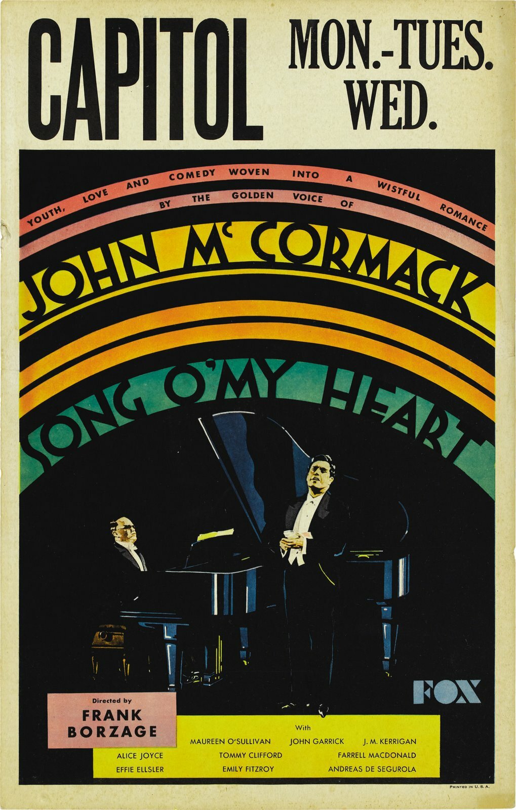 | слоган: | «YOUTH, LOVE AND COMEDY WOVEN INTO A WISTFUL ROMANCE BY THE GOLDEN VOICE OF JOHN McCORMACK (original one-sheet poster - all caps)» |