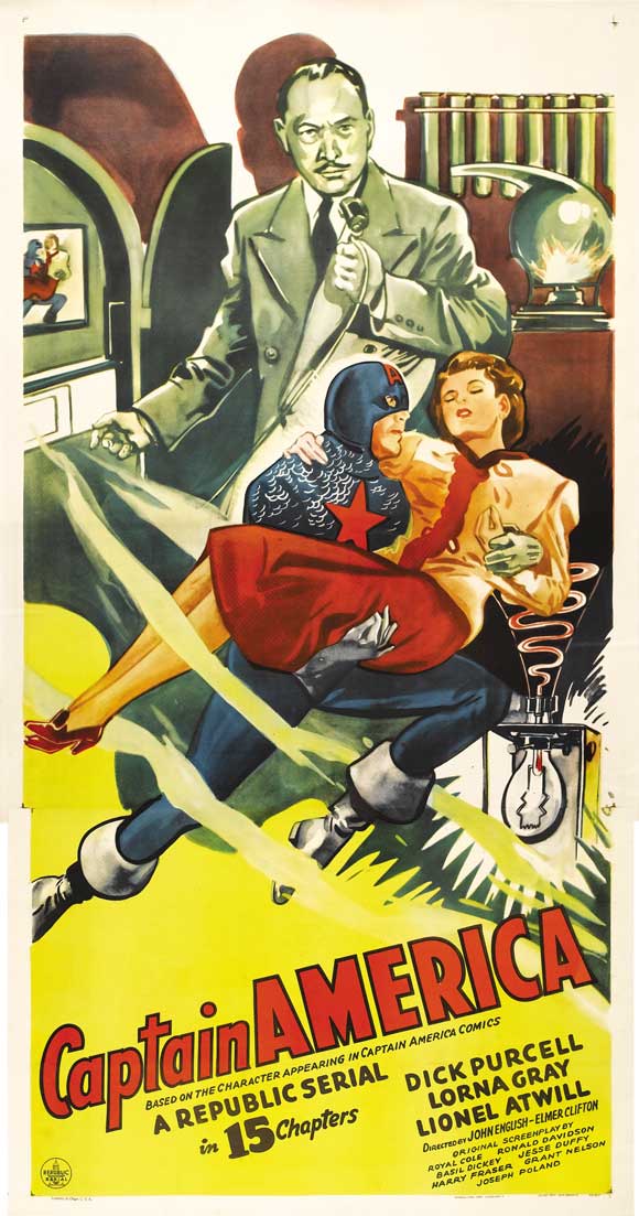 В начале 1940-х гг., когда комиксы о супергероях с успехом тиражировались и продавались, ещё одним способом популяризации данного явления стали попытки перенести персонажей со страниц комиксов на киноэкраны и телеэкраны. В те годы шла Вторая Мировая война, и потому не лишним было показать крутость героев, побеждающих врагов, для поднятия боевого духа. И если говорить о флагманах DC Супермене и Бэтмене, то эксперимент с их адаптацией в медиасферу можно назвать удачным (особенно мультсериал про Супермена). А вот что касается персонажей Marvel, то первым таким супергероем, которому удалось сойти со страниц комиксов, стал Капитан Америка, получивший свой сольный сериал 1944 года.