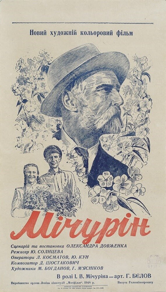 Мичурин 1948 года, художественный фильм, поставленный режиссёром Александром Довженко об учёном Мичурине Иване Владимировиче, русский, советский биолог и селекционер, автор многих сортов плодово-ягодных культур, доктор биологии (1934).