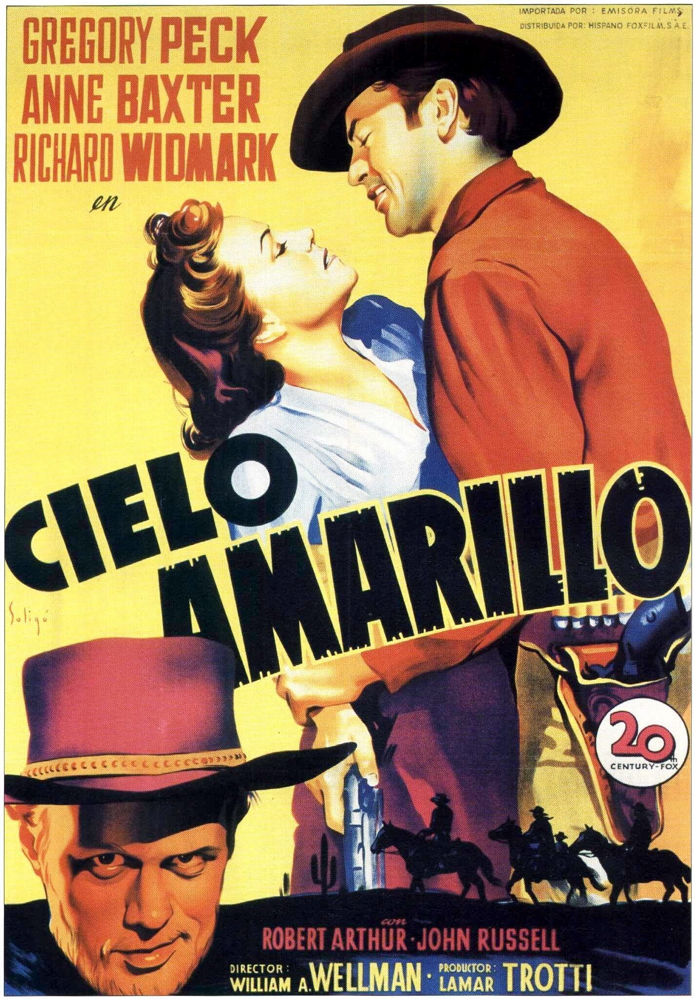 «Желтое небо» — классический вестерн 40-х. Бандиты, ограбление, погоня, заброшенный старательский городок, золото, красавица-героиня, любовь и превращение злодея в героя. Присутствуют все атрибуты жанра. Но в первую очередь присутствует и отлично передана атмосфера кино «про ковбоев». Много скачек, стрельбы, драк. Хорошо снята природа, а эпизод перехода через пустыню сделан просто на высшем уровне.