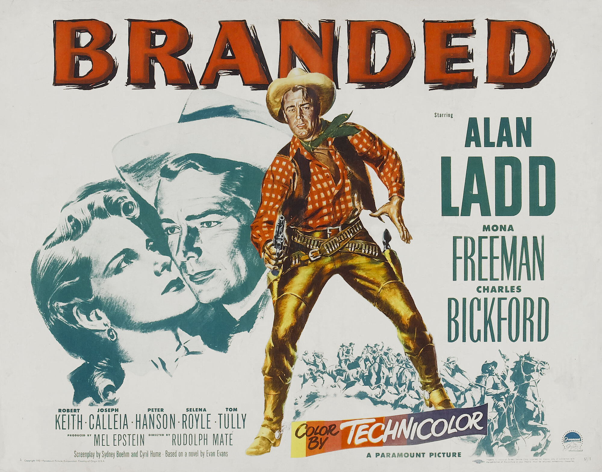В главной роли Алан Лэдд, один из самых популярных кинозвезд 40-х. прославившийся фильмами в дуэте с Вероникой Лейк. «Заклейменный» всего второй вестерн в его карьере. самая знаменитая его роль ждет спустя три года в «Шейне». Здесь он играет неплохо, но как-то отстраненно (особенно заметно в любовных сценах). На втором плане голливудская старлетка Мона Фриман и злодей Джозеф Каллейа.