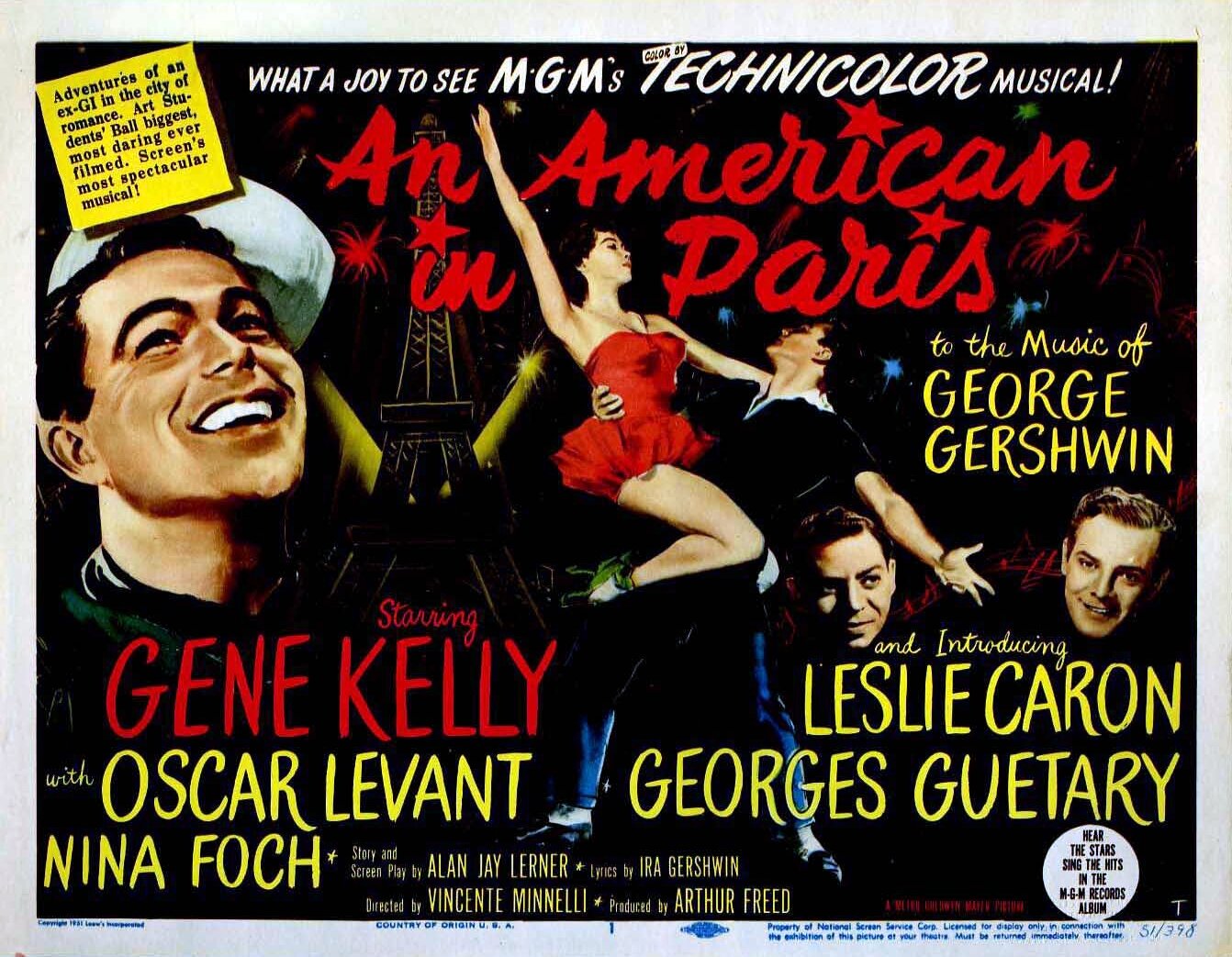 Париж, столица искусства. Именно в ней происходит действие фильма (хотя, конечно, видно невооруженным глазом, что снимали в павильонах, и не думаю, что в 1951 году странам Европы после Второй мировой войны было до фильмов). Трое мужчин, трое американцев. Джерри (Джим Келли) — художник, который продает свои картины на Монмартре и даже не установил на них цены, так как видно не было надобности. Музыкант, живущий все время на выигранные стипендии. И певец.