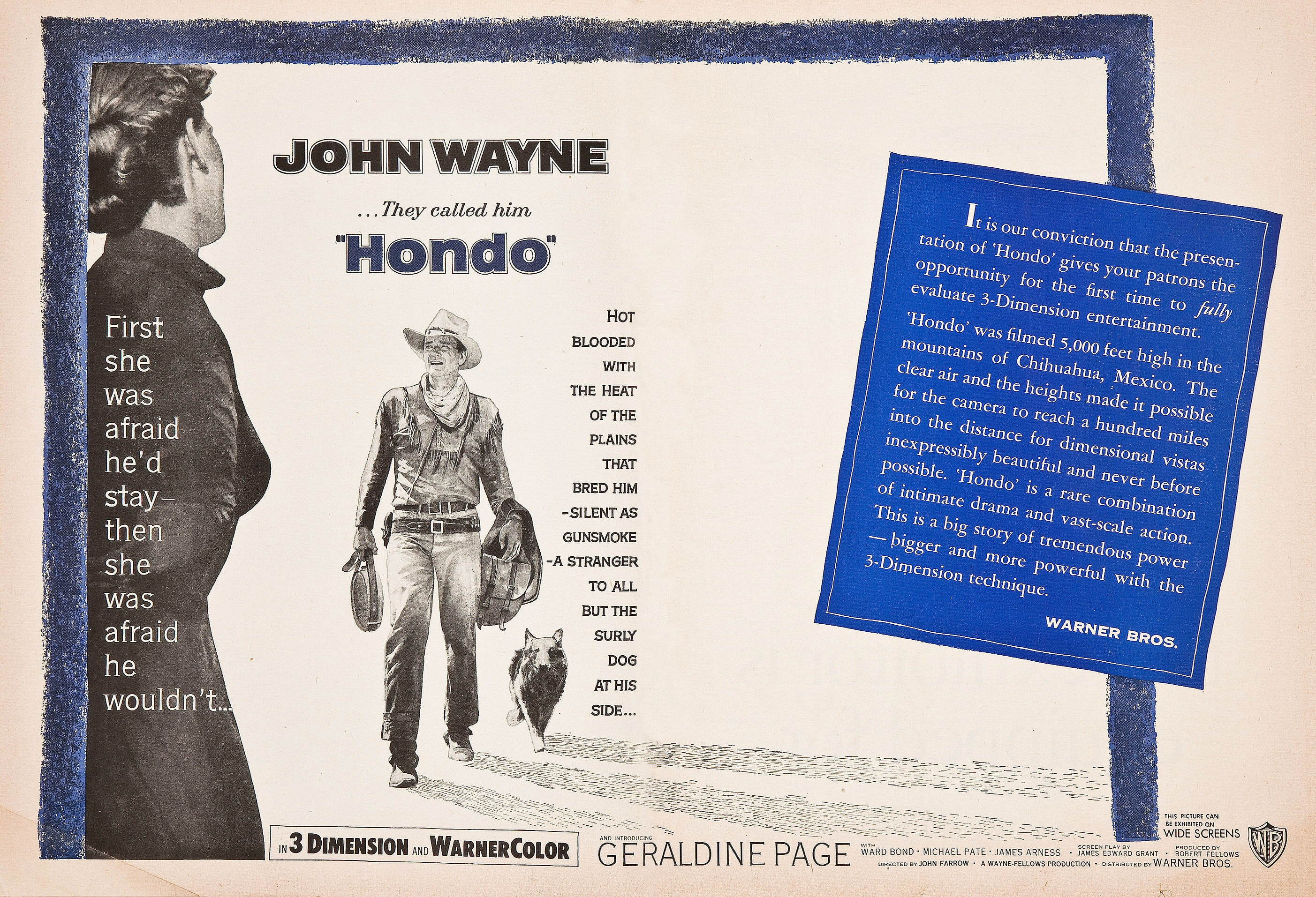 Джон Фэрроу снял замечательный вестерн с Джоном Уэйном в главной роли. В «Хондо» две взаимно пересекающиеся темы. С одной стороны мы следим за весьма противоречивыми взаимоотношениями с индейцами. Индейцы показаны весьма правдоподобно — они противоречивы, могут помочь и сделать благородный жест, а могут и снять скальп.