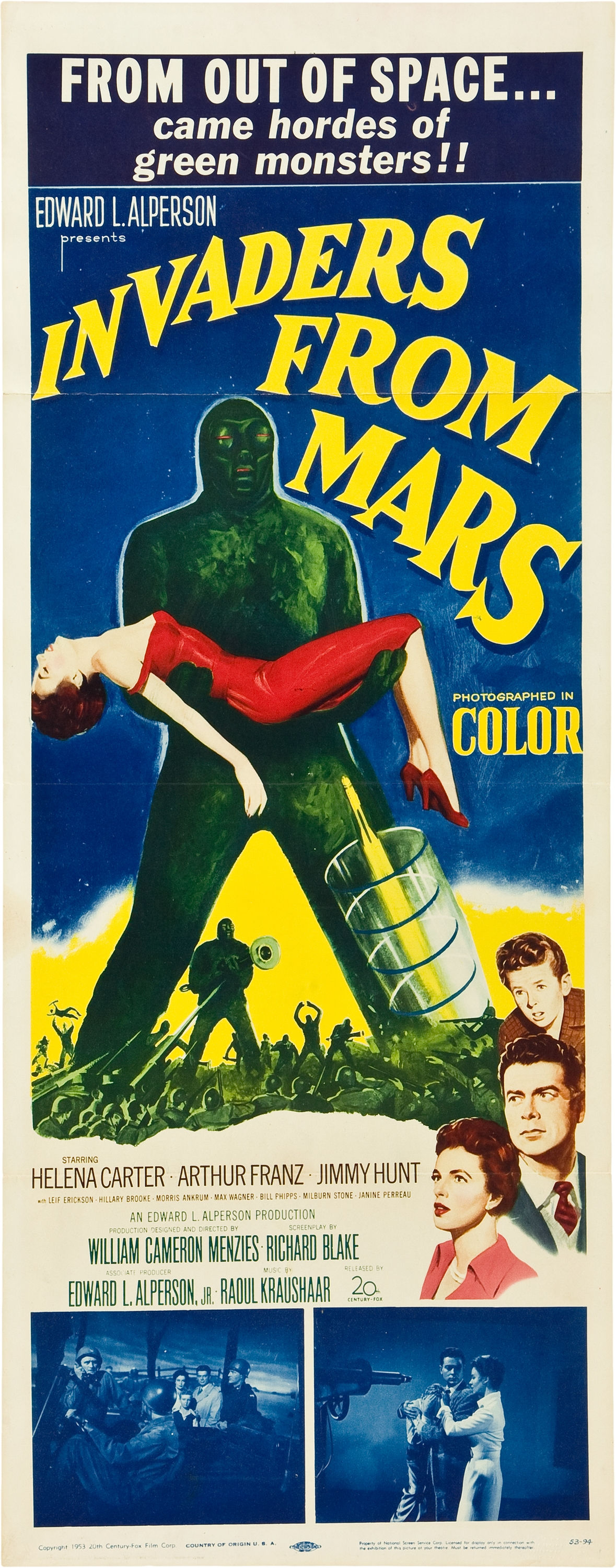 «Захватчики с Марса» могут похвастаться только последним. Это был первый американский цветной фильм, где были показаны инопланетяне.