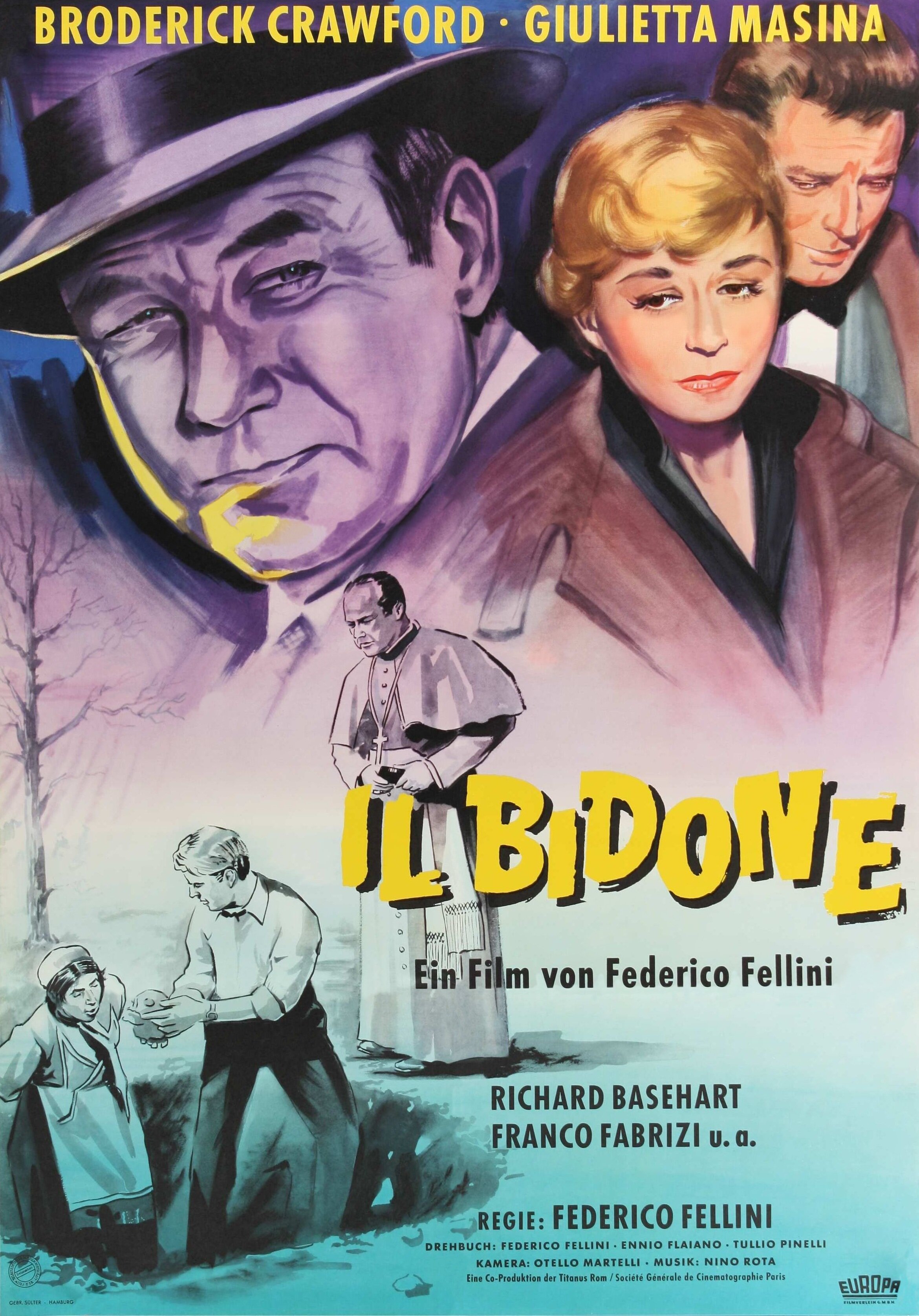 «Мошенничество» - следующая картина Феллини, во многом развивающая темы «Маменькиных сынков» и содержащая заготовку к «Сладкой жизни». Сегодня эту ленту мало кто помнит, слишком она кажется серьезной, даже нравоучительной для Феллини, обычно чуждого ригоризма. Вооружившись хорошо зарекомендовавшими себя в прошлых его работах актерами (Фабрици из «Маменькиных сынков», Бейсхарт из «Дороги» и Джульетта Мазина, снявшаяся на тот момент почти в каждом фильме Феллини), постановщик пригласил на главную роль Бродерика Кроуфорда, актера в целом типажного и с маленькой амплитудой исполнительских возможностей.