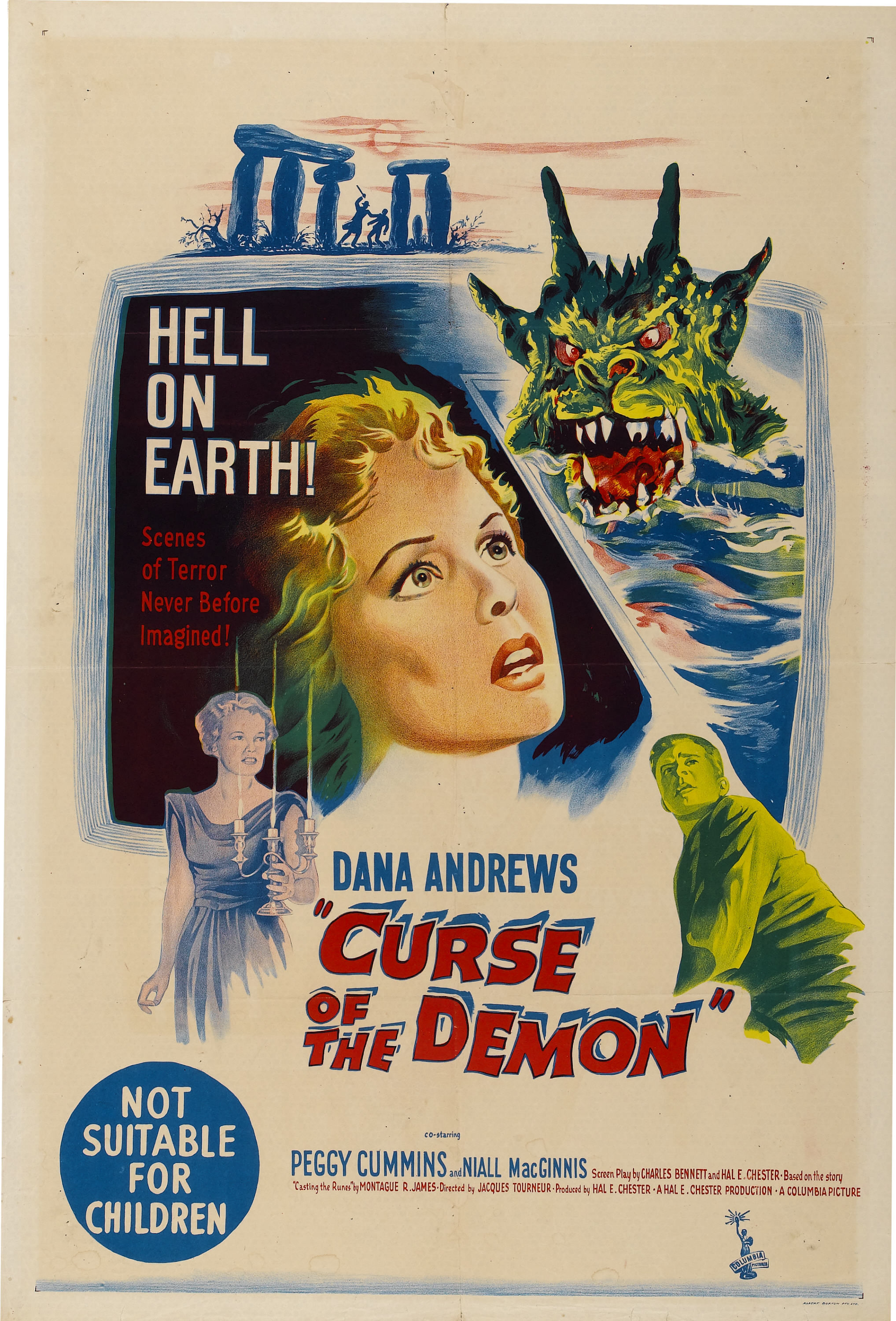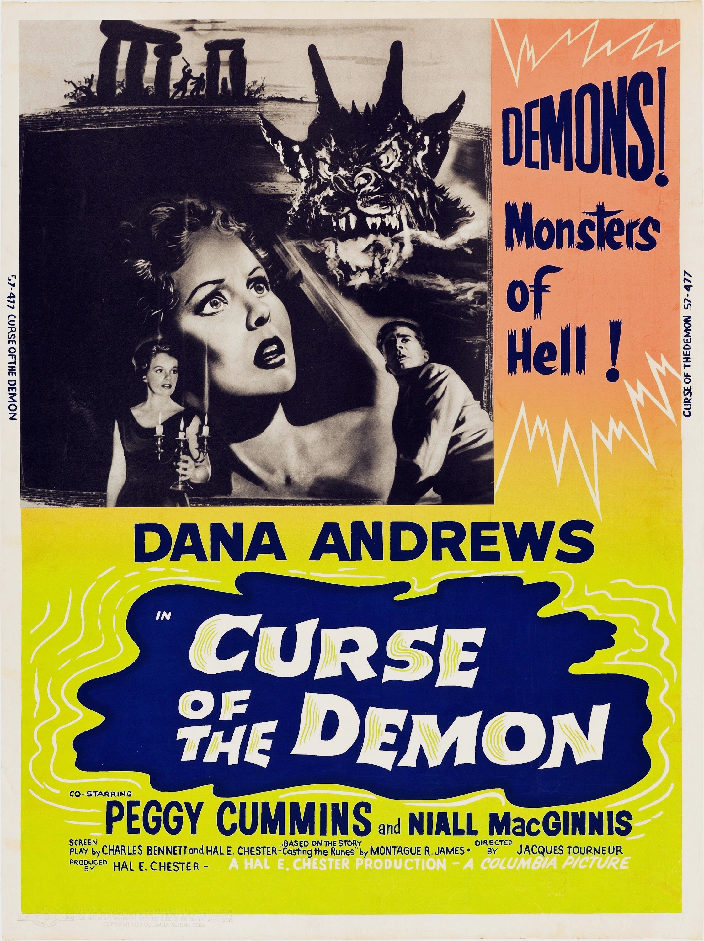 Сценарий Сюжет фильма основан рассказе английского писателя М. Р. Джеймса «Casting the Runes». Отправной точкой происходящего служит смерть профессора парапсихологии Харрингтона, который незадолго до своей гибели замышлял развеять мифы, созданные вокруг мистического культа доктора Джулиана Карсвелла. Однако, убедившись, что всё это вовсе не выдумка, а чистая правда, профессор пытается убедить Карсвелла остановить навлеченное на него проклятие, однако демон всё-таки настигает его и убивает при помощи оборванных линий электропередач. Смерть профессора не остается не замеченной и привлекает внимание его американского коллеги профессора Холдена и племянницы Харрингтона Джоанны. Холден и Джоанна совместно расследуют обстоятельства, приведшие к гибели профессора, и выходят на Карсвелла, который требует от Холдена незамедлительно бросить это дело, на что получает решительный отказ. Такая дерзость со стороны Холдена не проходит для него бесследно, потому что вскоре герой обнаруживает в своих вещах специально подложенный кусок пергамента с древними руническими надписями, которые означают, что на него наслали древнее проклятие, и что буквально через несколько дней его ждет верная гибель. И вот на протяжении всего фильма Холден пытается найти научный выход из ситуации, а Джоанна — мистический.