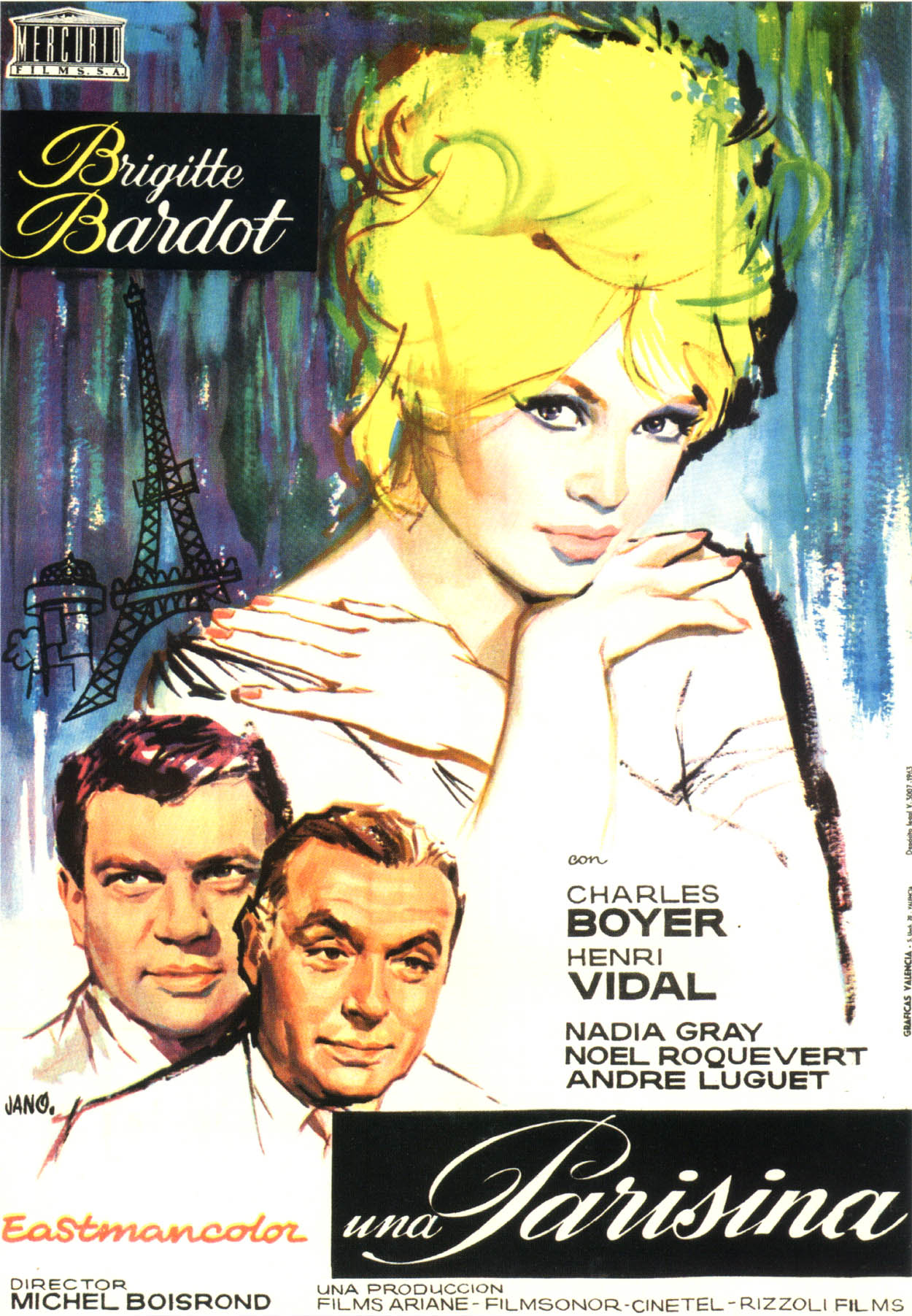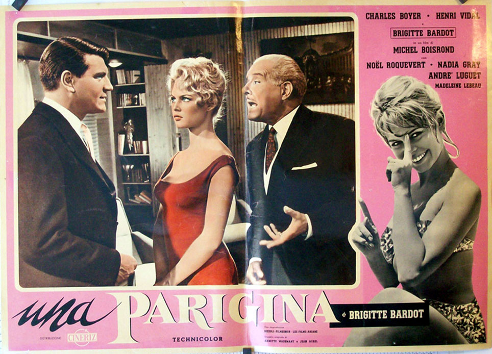 Что до режиссёра фильма, возможно имя Мишеля Буарона мало, что скажет современным любителям кино, тем не менее поверьте, место на паноптикуме кино ему обеспеченно. Поскольку именно он открыл миру Брижит Бардо, /заметим фильм «Парижанка» уже второй фильм Буарона с Бардо/. А ещё можно добавить, чтоу Буарона снимались Бурвиль, Лино Вентура, Милен Демонжо, Ален Делон, /вместе с Делоном Буарон и сам с сыграл одну из ролей у Жана-Пьера Мельвиля, в фильме «Самурай»/.