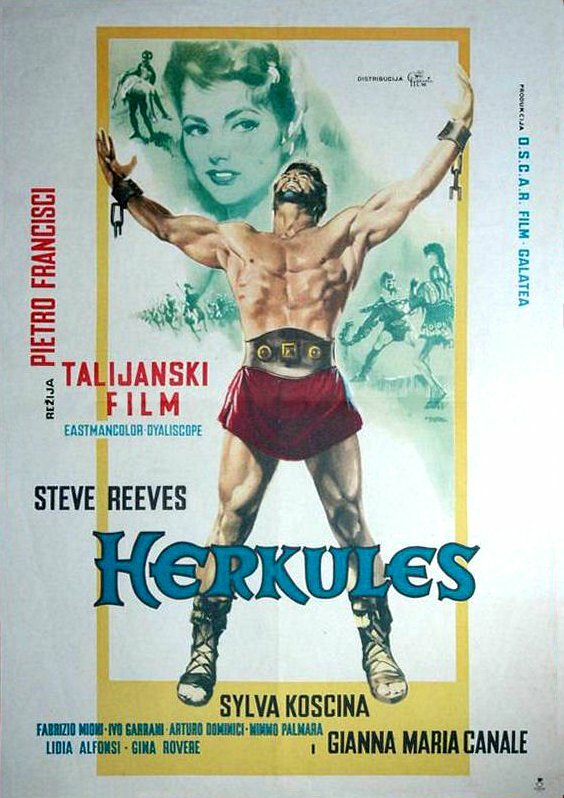 Присутствие в списке сценаристов Аполлония Родосского не должно смущать. На самом деле этот фильм крайне вольная фантазия что на тему мифов о подвигах Геракла, что о его вкладе в поход за Золотым руном. Казалось бы, по инерции мы должны ждать, что в фильме будут отражены прежде всего знаменитые подвиги героя, но нет, из всех них в кадре лишь победа над Немейским львом, да и то лев какой-то не совсем Немейский, а вполне себе реальный африканский. А вот история о руне — это большая часть сюжета, причем сценаристы сделали Геракла самым главным участником плавания, затмившим даже Энея. Впрочем, и остальные герои тоже находятся (в прямом и переносном смысле) тени героя. От начала до конца фильма исполняющий главную роль Стив Ривз демонстрирует свою вполне впечатляющую фигуру культуриста, играя персонажа, для которого почти нет невозможных с физической точки зрения заданий. Однако к атлетической трактовке образ не сводится. Памятуя то ли о специфике поэмы эллинистического периода, где героическое было тесно связано с мелодраматическим, то ли о запросах публики, которая не пойдет на фильм без любовной линии, те же сценаристы делают Геракла не только атлетом и воином, но и героем-любовником, что опять же выглядит вполне убедительным.