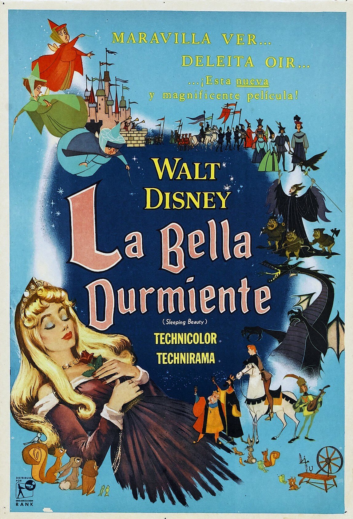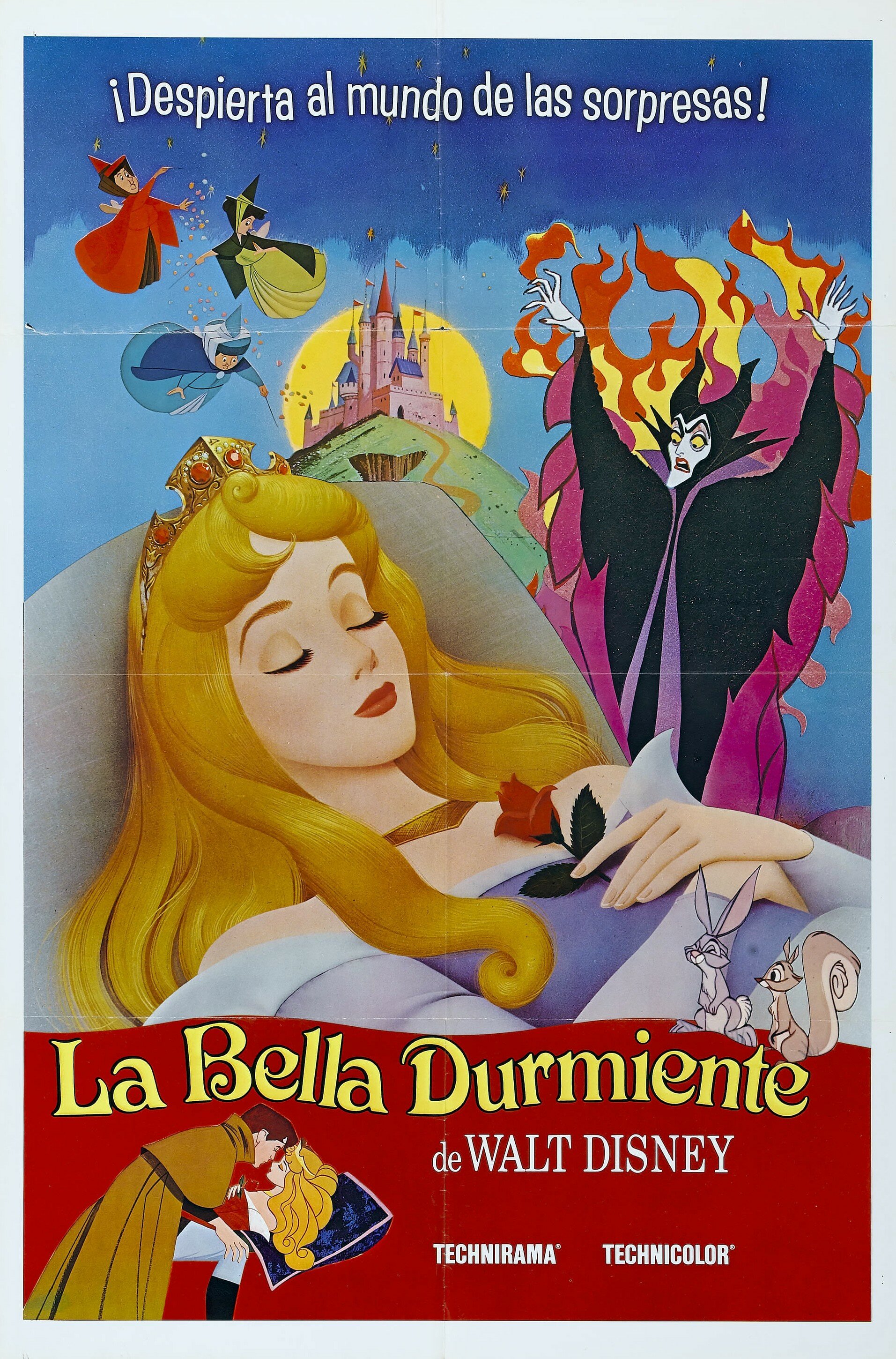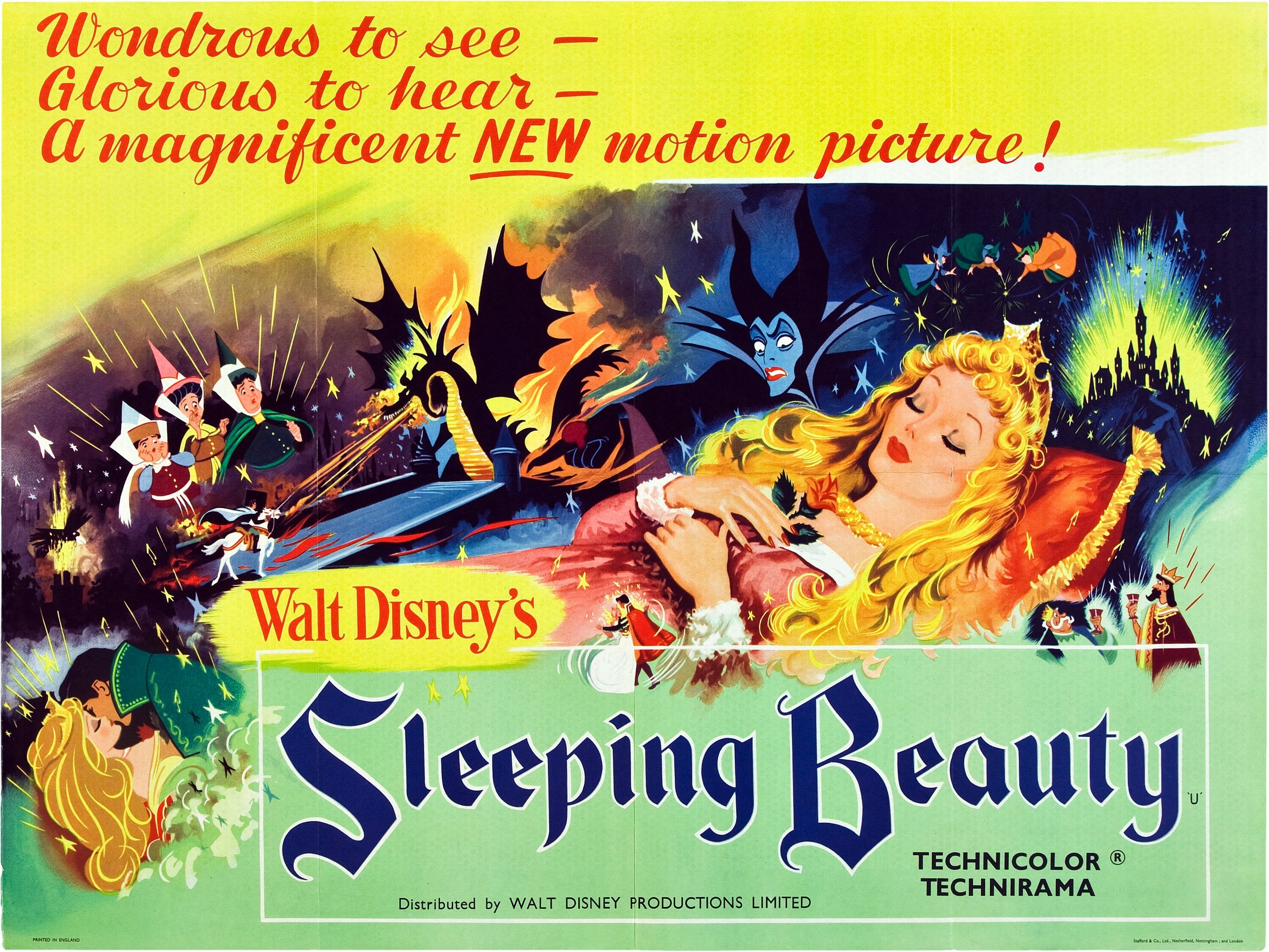 По наставлению Уолта Диснея принцесса Аврора действительно отличается от своих сказочных подруг, Белоснежки и Золушки тем, что ее всю сознательную жизнь воспитывали феи, да и сама она проживала в лесу, то бишь вдали от королевства, большого города и общества, которое не всегда приносит пользу. Поэтому из Авроры получилась искренняя, жизнерадостная и добрая девушка, за которую зритель искренне переживает, ведь она априори не может сделать никому плохо. Конечно, подобный образ получился слишком идеализированным, однако не стоит забывать о том, что «Спящая красавица» должна была с головой захватить воображение юных зрителей и у нее это получилось в наилучшем виде. Произошло это не в последнюю очередь из-за тщательной, многогранной и необычайной технологии рисовки, которая с одной стороны исполняла классические заветы студии, а с другой использовала интригующее сочетание мотивов Готики и Ренессанса. Уолт Дисней самолично курировал работу Джероними и прочих режиссеров, находящихся в его ведении, дабы даже взрослые зрители испытывали трепет во время наиболее напряженных, драматических эпизодов, необычайно сочетающихся с жизнерадостными сюжетными моментами. Так что вся «Спящая красавица» находилась во власти прямо противоположных эмоциональных всплесков, которые во многом и сделали ее той сказкой, которой восхищаешься как в юном возрасте, так и зрелом. И каждый раз ты обращаешь внимание на некие новые нюансы, которые ранее находились на периферии. Скажем, та же волшебница Малефисента благодаря своим грозным, напыщенным и отчасти трагическим монологам, со временем стала восприниматься не настолько однозначно, скрывая за холодной ненавистью к королевской семьи нечто большее и таинственное, впоследствии раскрытое в полнометражном блокбастере эпохи римейков от Disney.
