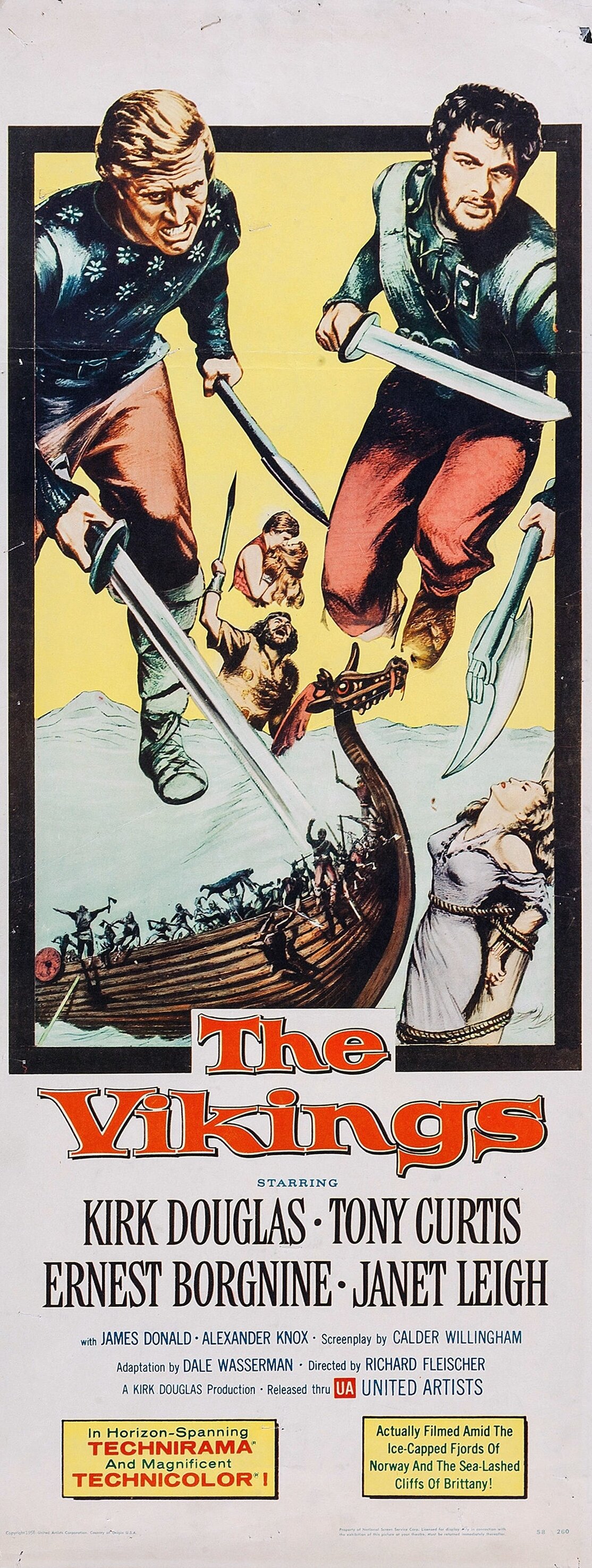 Ан нет, в фильме 1958 года нам показывают горсточку своеобразных людей, главным героем делают англичанина, и фильм по большому счету не про викингов, а про то как англичанин и викинг одну девку делили.