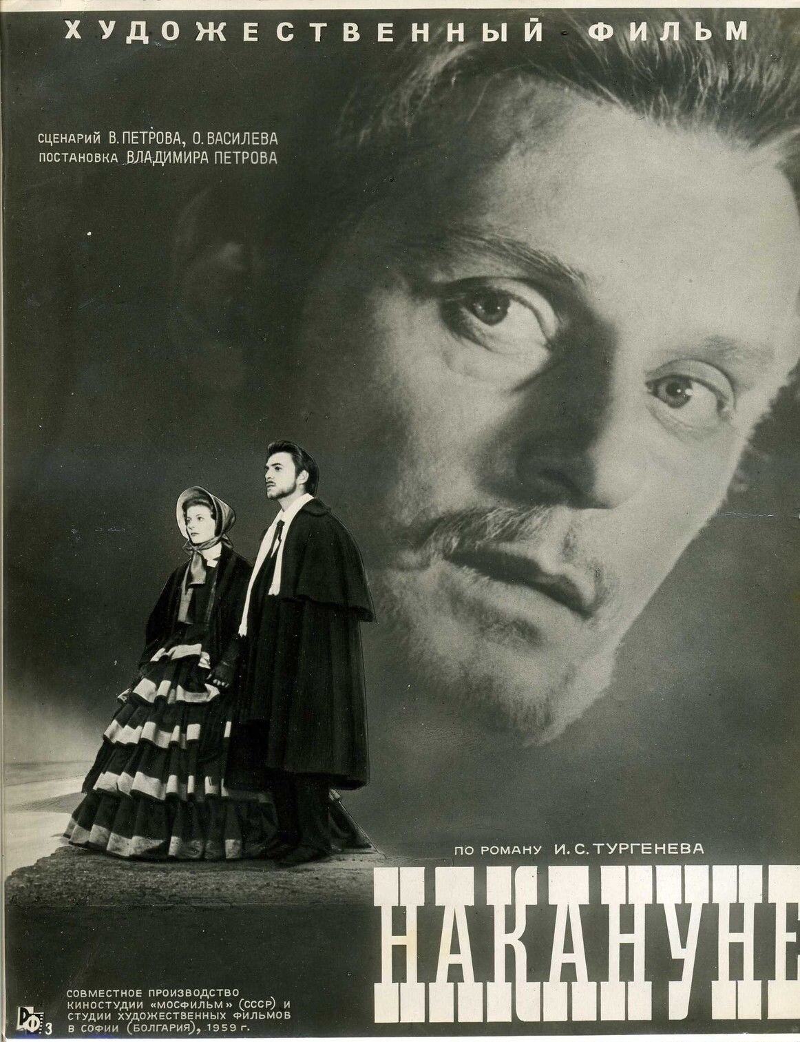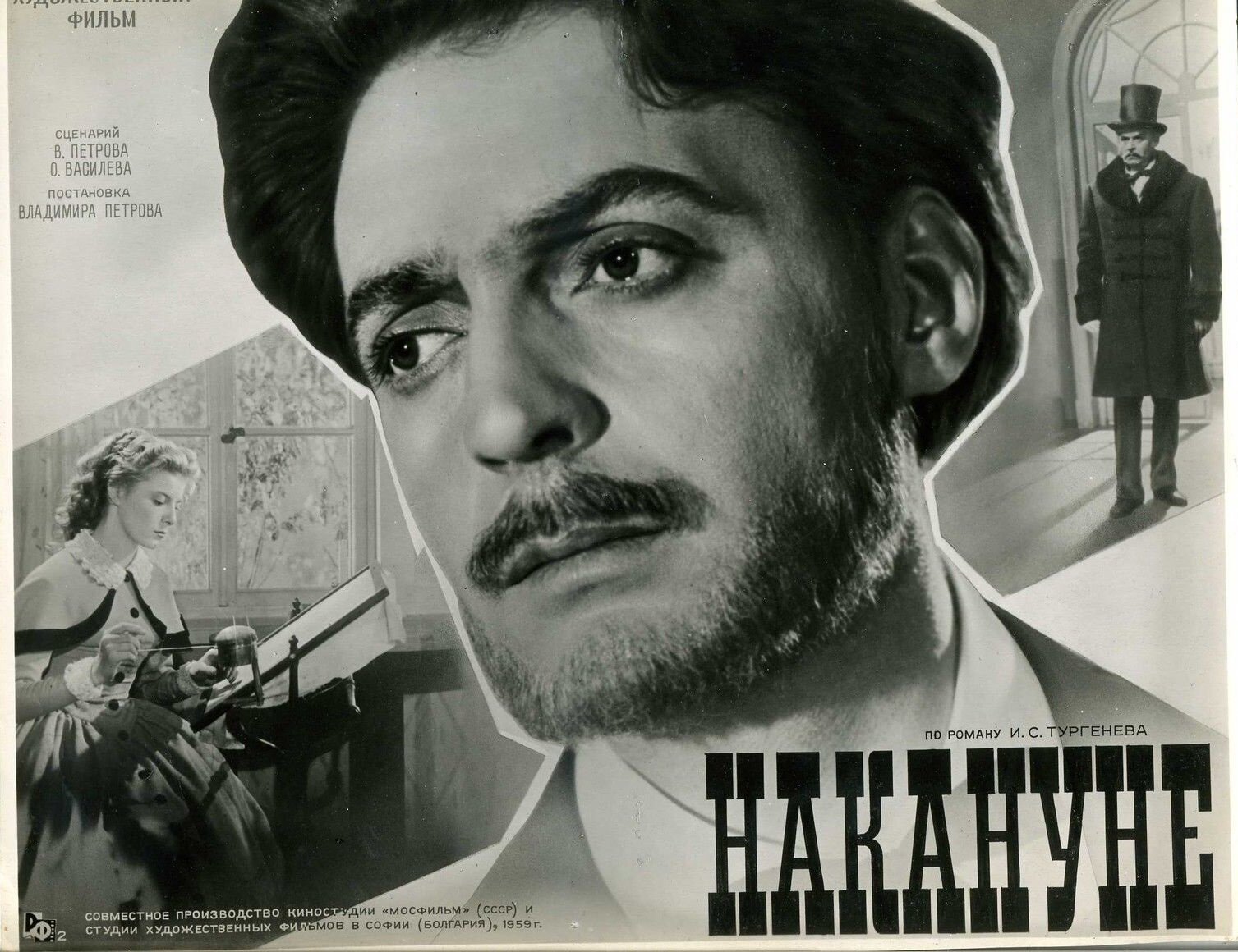 Роман И. С. Тургенева конечно о любви и только о ней. Ну, возможно ещё и о свободе и в некотором роде об освобождении Болгарии от турецкого ига. Перенеся на экраны один в один, не отступая от правил и сюжета, не стараясь проявить своё видение романа, используя режиссёрские уловки и возможности, Владимир Петров сфокусировал внимание на любви русской девушки из дворянской семьи и болгарского студента. Елена Николаевна и Дмитрий Никанорович. Но до того, как промелькнёт меж ними та самая пресловутая искра, будет ещё много интересного. В частности мы увидим семью Елены Стаховой, её друзей двух влюблённых в неё молодых людей, Андрея Петровича Берсенева и Павла Яковлевича Шубина, которых сыграли Всеволод Сафонов и Олег Табаков соответственно. Конечно это не главные роли, а роли второго плана, но они сыграны мастерски, здорово, именно так, как того требовала ситуация, погружавшая нас середину девятнадцатого столетия. Идеальные образы. Мягкий, интеллигентный Берсенев (Сафонов), будущий учёный, и свободный художник, ваятель, глиняных дел мастер Шубин (Табаков) прекрасно смотрелись в кадре, но не как статуи и изваяния, а как живые люди того времени. Берсенев влюблён в Елену, но куда там. Она уважает Андрея Петровича, но ещё не зная Инсарова задаёт герою Всеволода Сафонова простой вопрос, который станет роковым в её судьбе. Вопрос о том, есть ли среди его знакомых деятельные знаменитые люди, такие что и в огонь и воду, ведь сама Елена Николаевна тихая и скромная девушка, помогающая нищим и заботящаяся о животных, втайне мечтает встретить своего доблестного рыцаря. И Андрей Петрович, немного подумав, отвечает, что есть один студент, который подходит под её описание и он счастлив их познакомить. Вот так и привёл друг дома и личный друг Елены Николаевны, под её светлые очи, любовь всей её жизни.