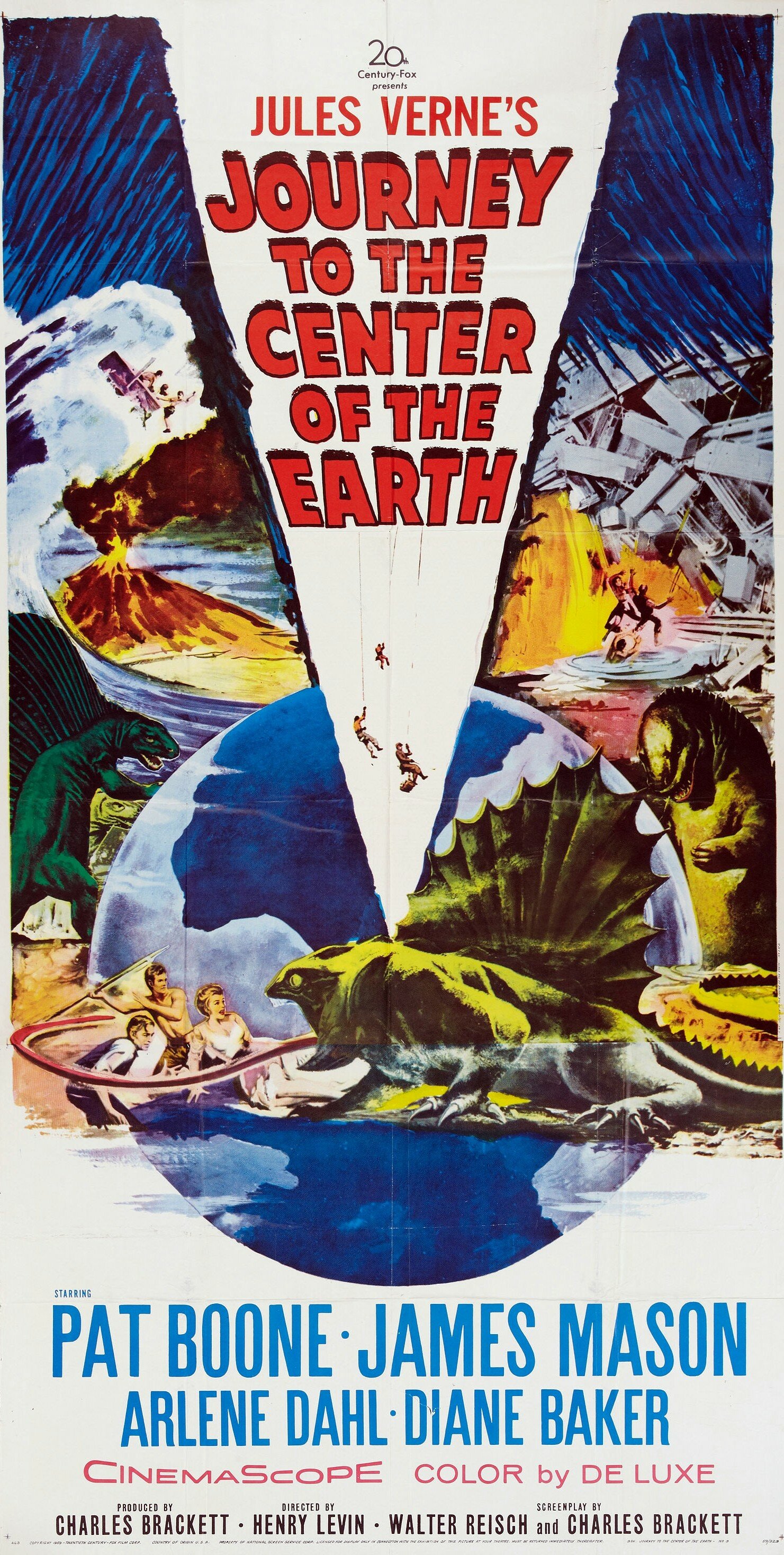 «Путешествие к центру Земли» — ещё одна экранизация Жюля Верна студии «20 век фокс», следующая за «20000 лье под водой». Здесь ещё более вольно обошлись с первоисточником, но, тем не менее, фильм сам по себе прекрасен. Кое-что всё-таки оставили от романа — общий сюжет, в котором профессор Гётеборг, его племянник Аксель и их проводник отправляются к центру Земли по стопам Арне Санкнуссема, луч, указывающий на спуск под Землю, пересечение на плоту подземного океана и возращение на поверхность по жерлу вулкана. Из новых персонажей добавились вдова погибшего профессора Линденбрука, хитрый и коварный наследник графа Санкнуссема с компаньоном и утка, которую проводник Гётеборга Ганс таскает за собой, являющуюся виновницей нескольких космических ситуаций в фильме. Также, в отличие от романа Верна, изначально действие происходит в Гамбурге, а не в Эдинбурге, и герои в подземном мире открывают якобы провалившуюся туда Атлантиду, хотя если это смыслить, то это выглядит весьма бредово и фантастично. Хотя, пожалуй, не больше чем полая Земля.