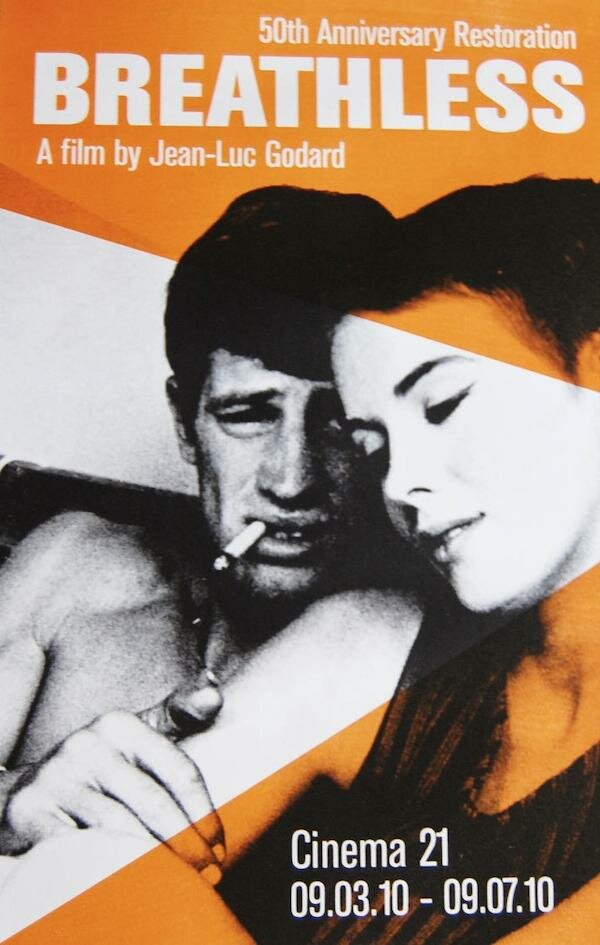 Фильм На последнем дыхании Жана Люка Годара - одна из главных икон новой французской волны. Фильм, в котором Годар на зло классическому французскому кинематографу того времени нарушает все правила и законы кино и таким образом изобретает его заново. Сюжет, повествующий о том, как французский гангстер влюбляется в американскую студентку с трагический развязкой, подсмотренный в обожаемом Годаром нуаре, по сути абсолютно не важен. В этом парадоксе и заключается революционность данного фильма.