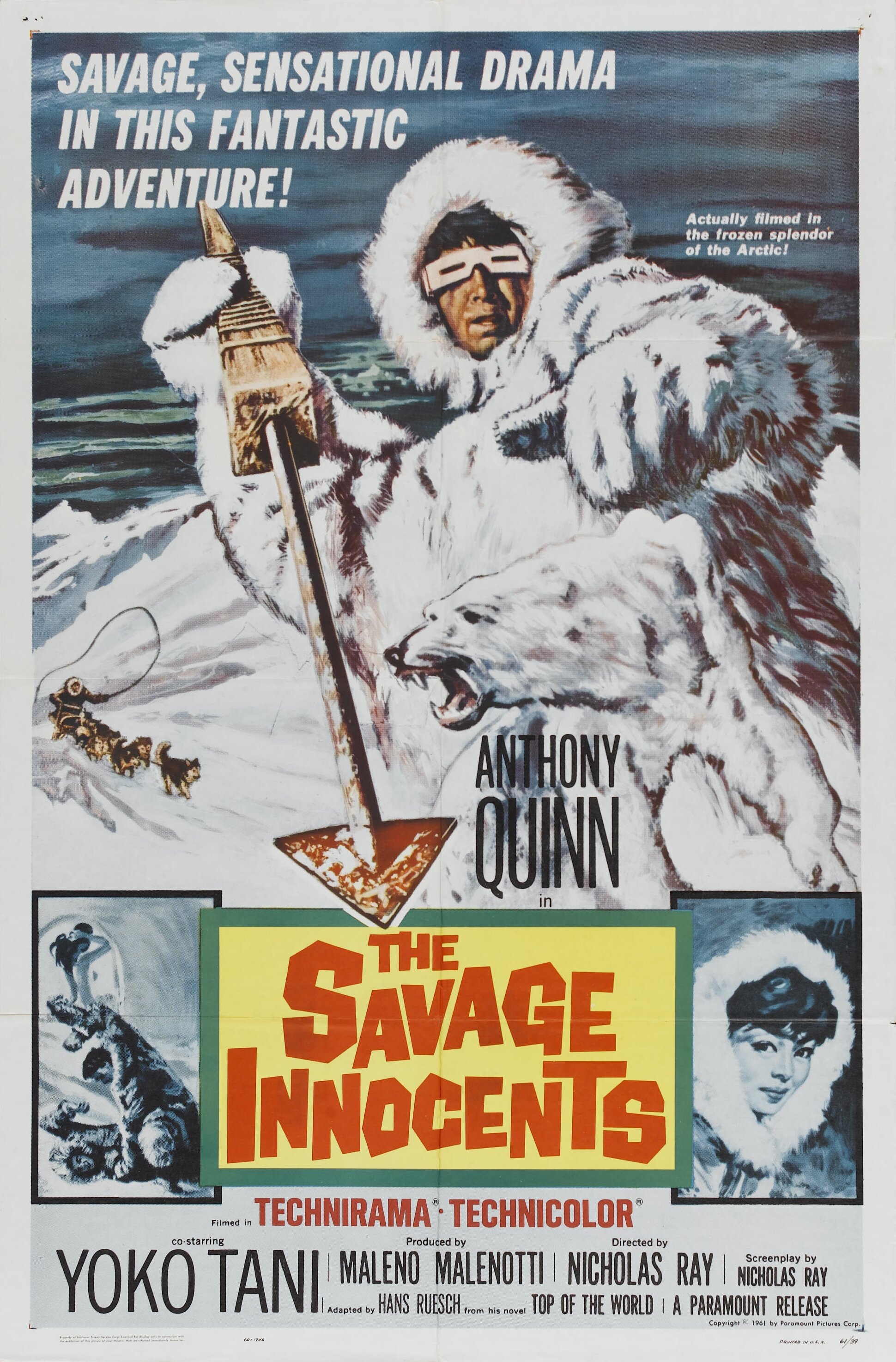 Самый неожиданный фильм в творчестве Николаса Рэя. Вот вам — белые медведи, иглу и эскимосы. Мало? Так получите мясо с червями и обычаи гостеприимного гетеризма. В смысле, что хозяин дома предлагает своей жене разделить свое ложе с гостями. И все так мило, трогательно. Улыбающийся мачо Энтони Куинн и его коллега, актриса из Японии Йоко Тани, создают весьма оригинальное описание быта северных племен. Они так естественны и непринужденны, и выставляются тут «дикарями без причины». Их естественность — бунт для западной цивилизации. Столкновение неумолимо.
