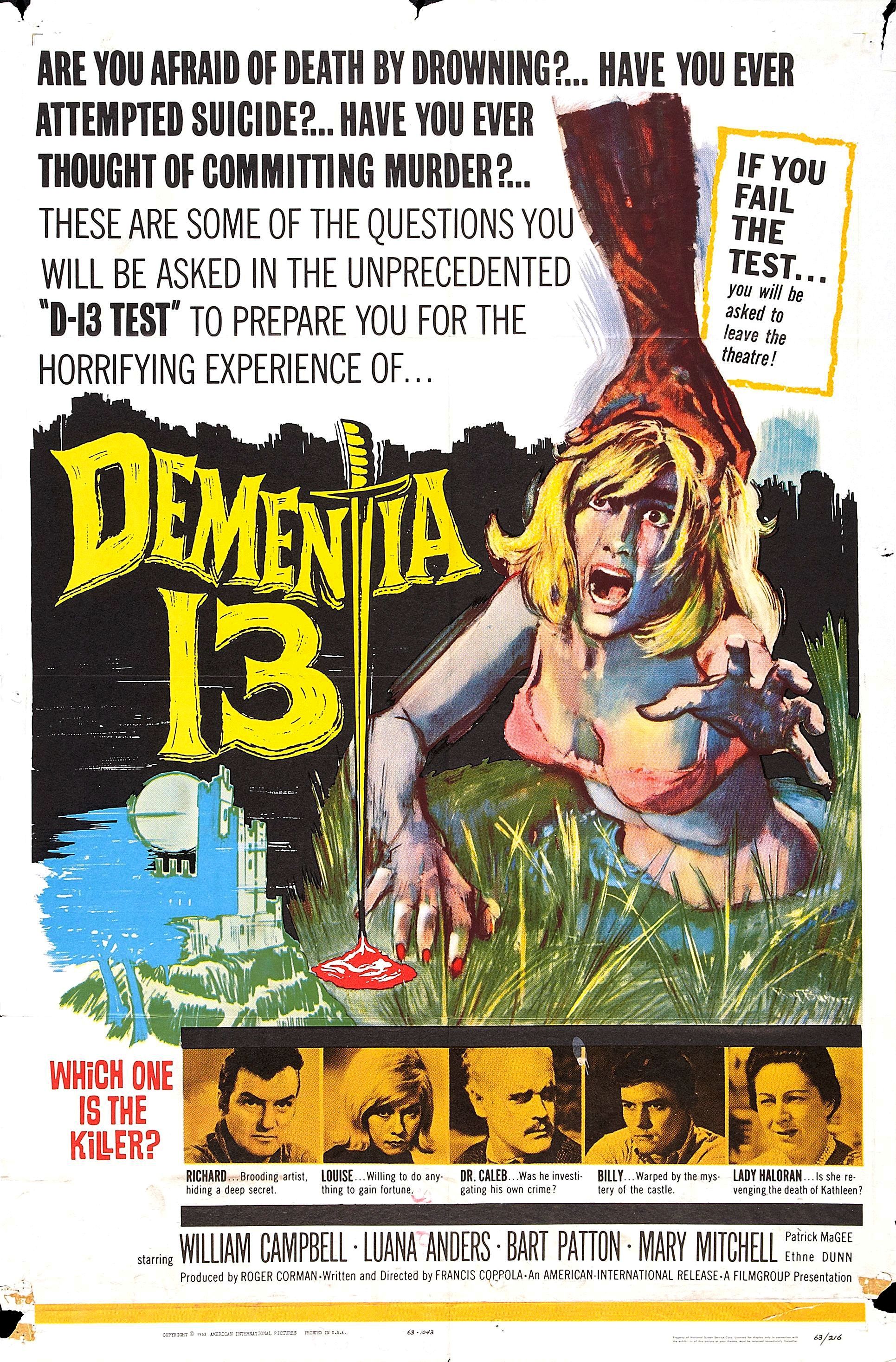 Более полувека назад, в далёком 63-м году культовый ныне режиссёр Френсис Форд Коппола был молодым, никому не известным 24-летним юнцом, в персональном портфолио которого значились лишь два фильма сомнительного, полупорнографического содержания. Однако именно тогда судьба свела его с легендарным продюсером и режиссёром Роджером Корманом, который стоял у истоков «второсортных», в хорошем смысле этого слова, фильмов ужасов. Вот только несколько названий картин, сделанных на тот момент Корманом: «Чудовище с миллионом глаз», «Болотные женщины», «Атака Крабов-Монстров», «Ведро крови», «Похороненные заживо»… В общем, вы понимаете «масштаб трагедии». Как бы то ни было, но именно Роджер Корман увидел что-то в Френсисе Форде Копполе и помог реализовать ему проект «Безумие 13».