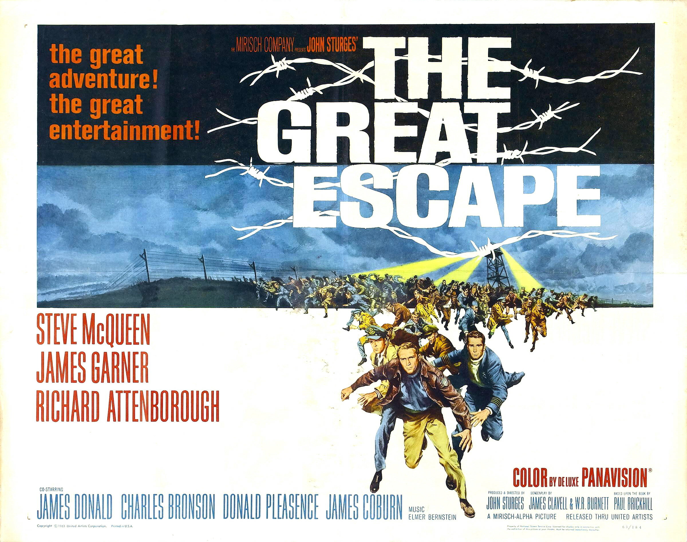 Если совсем уж откровенно, то мой изначальный интерес к The Great Escape базировался не столько на самой тематике — безусловно, интересной для меня, — сколько на участии в картине целых 3-х великих киноактёров (это много!), перед которыми я всегда преклонялся. Стив МакКуин, Джеймс Коберн и Чарльз Бронсон в одной компании — настоящее киносозвездие! Но и здесь, что досадно, есть немалый повод к разочарованию. Коберна, к немалому моему удивлению, задвинули куда-то далеко на 3-й план — его роль незначительна и, к сожалению, невзрачна. Бронсон, что опять же странно, снимается в СОВЕРШЕННО несвойственной для него роли, никоим образом не подходящей его имиджу, и, в этом смысле, даже противоположной — вестерн-мачо-форева играет сильного мужчину, страдающего клаустрофобией (!). И только МакКуин пребывает в своей родной стихии, хотя в данном случае, увы, не обошлось без переигрывания. (Известен факт, что один ветеран раскритиковал МаКуина за «гламуризацию» его героя.) Говоря об актёрах, необходимо также отметить ещё две значительные роли — главного организатора побега майора Бартлетта по кличке «Большой Икс» (замечательный британский актёр Ричард Аттенборо) и капитана Хэндли, «снабженца» беглецов (Джеймс Гарнер).