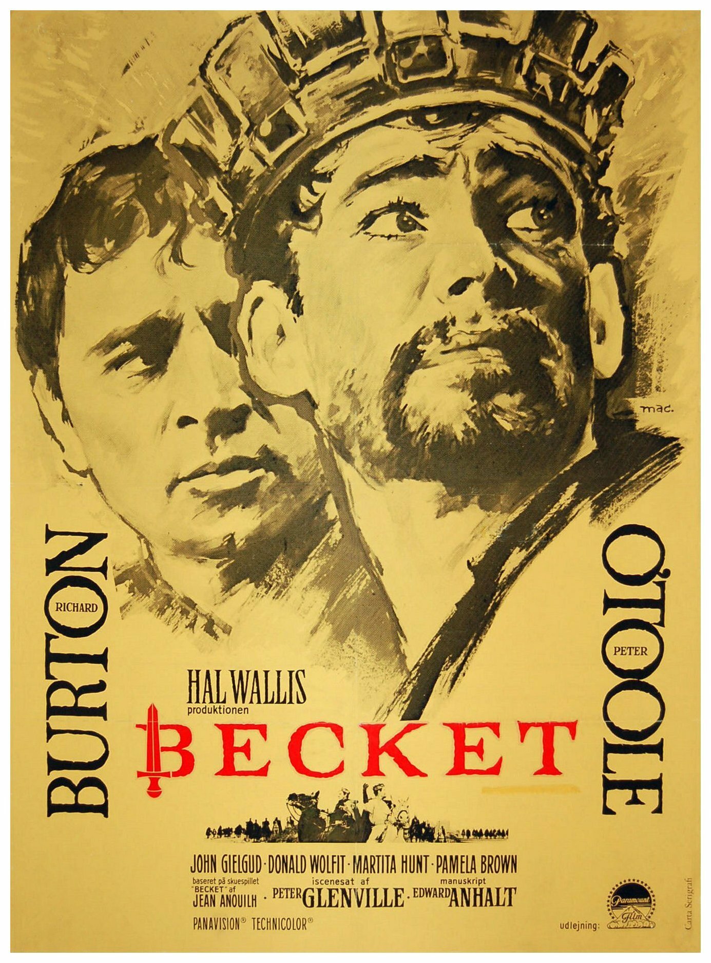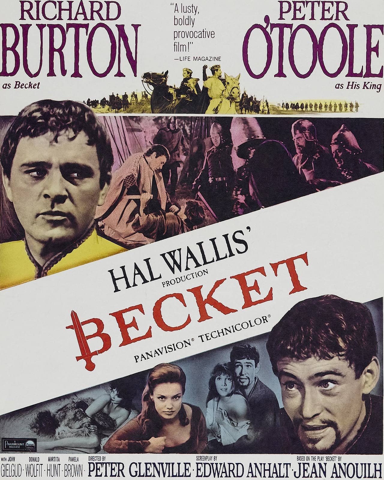 Оскароносный «Бекет» был снят известным театральным режиссером Питером Гленвиллом по пьесе знаменитого французского драматурга Жана Ануя. Интересно, однако, что этот неизбежный отпечаток «сценичности», хотя и придает действию фильма определенный колорит и значительность, тем не менее в итоге не склоняет его в сторону сугубой театральности. Гленвилл искусно изменил многие сцены, диалоги и даже события пьесы. Но подарив таким образом картине динамику и полнокровие кинематографического жанра, он практически не тронул идейной сути основного конфликта. Режиссерская трактовка отчетливо видна лишь в заметном изменении образов главных героев драмы, их актерской интерпретации.