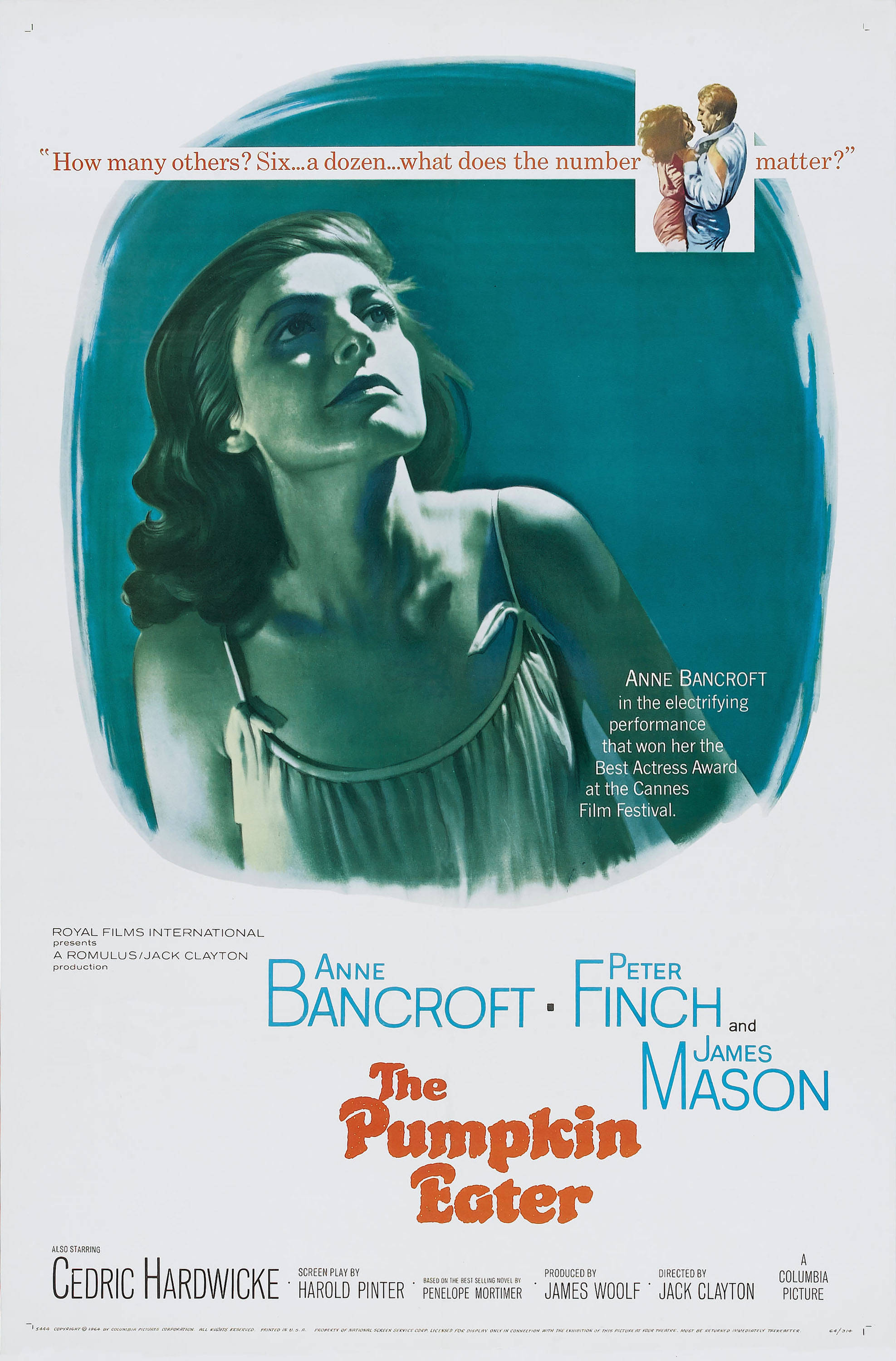 А вот киноакадемики ленту выделили одной, но далеко не последней по ранжиру номинацией — Энн Бэнкрофт за исполнение многодетной мамаши получила оскаровскую номинацию. Как по мне, Бэнкрофт — безусловно, сильная актриса — выдвинули на вторую в своей карьере номинацию по наитию, больше как за воспоминание по феерически исполненной роли в «Сотворившей чудо» Артура Пенна, за что она и получила в 1963-м «Оскар». Но Бэнкрофт в середине 60-х все еще оставалась больше театральной актрисой, нежели кинематографической, и это определенно накладывало отпечаток на ее творчество. В данном фильме Бэнкрофт была выразительна, трагична, колоритна… но все это разбивалось о бессмысленную в сюжетом плане постановку. Австралиец Питер Финч в роли мужа героини Бэнкрофт смотрелся также сносно, но опять же, все эти индивидуальные актерские потуги нивелировались на фоне очень корявого сюжета. Наконец, Джек Клейтон и вовсе умудрился «потерять» в постановке великолепного актера Джеймса Мейсона, которого за очками и неузнаваемым гримом явно использовали не по назначению.