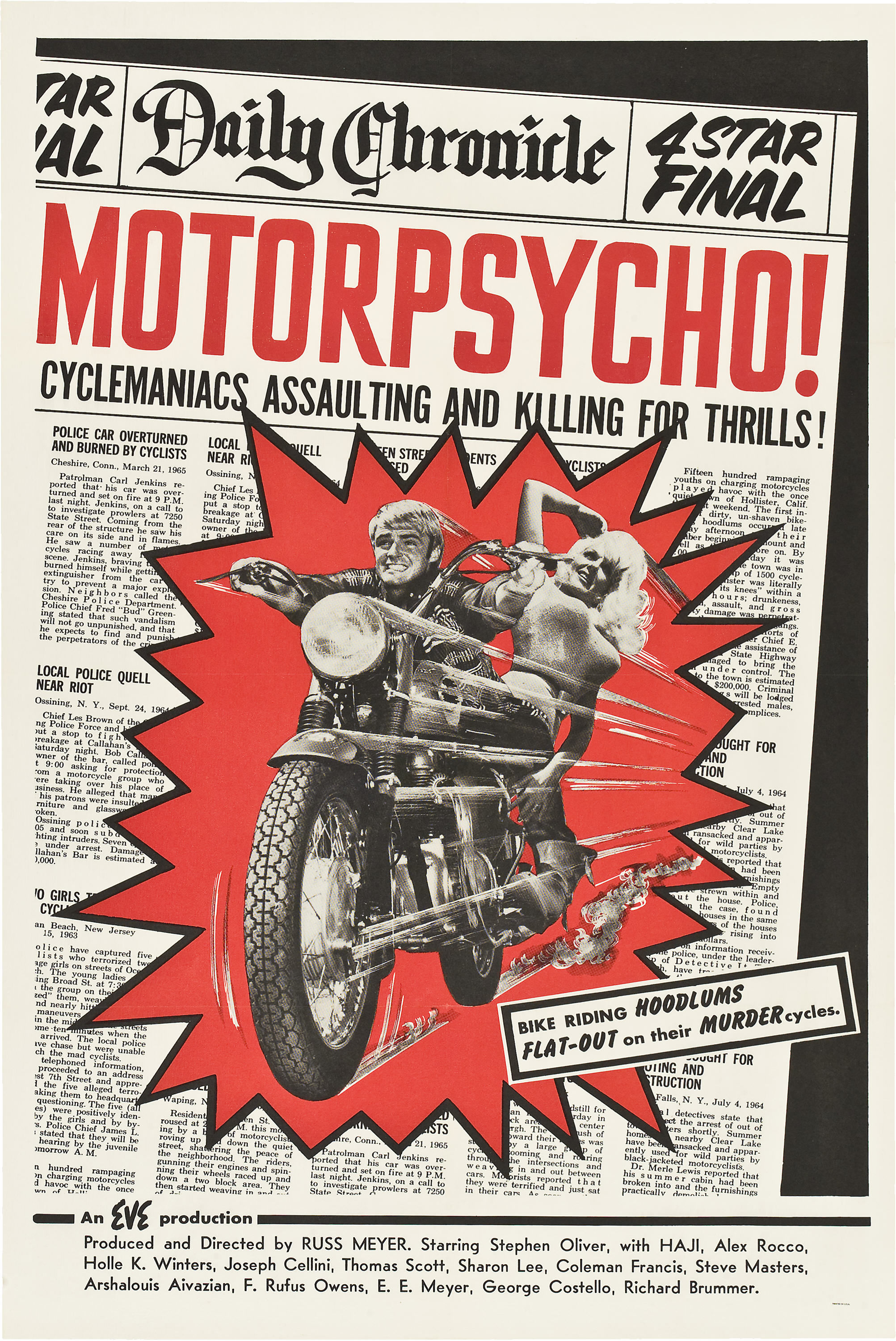 | слоган: | «Cyclemaniacs assaulting and killing for thrills! Bike riding Hoodlums Flat-Out on their Murder cycles.» |