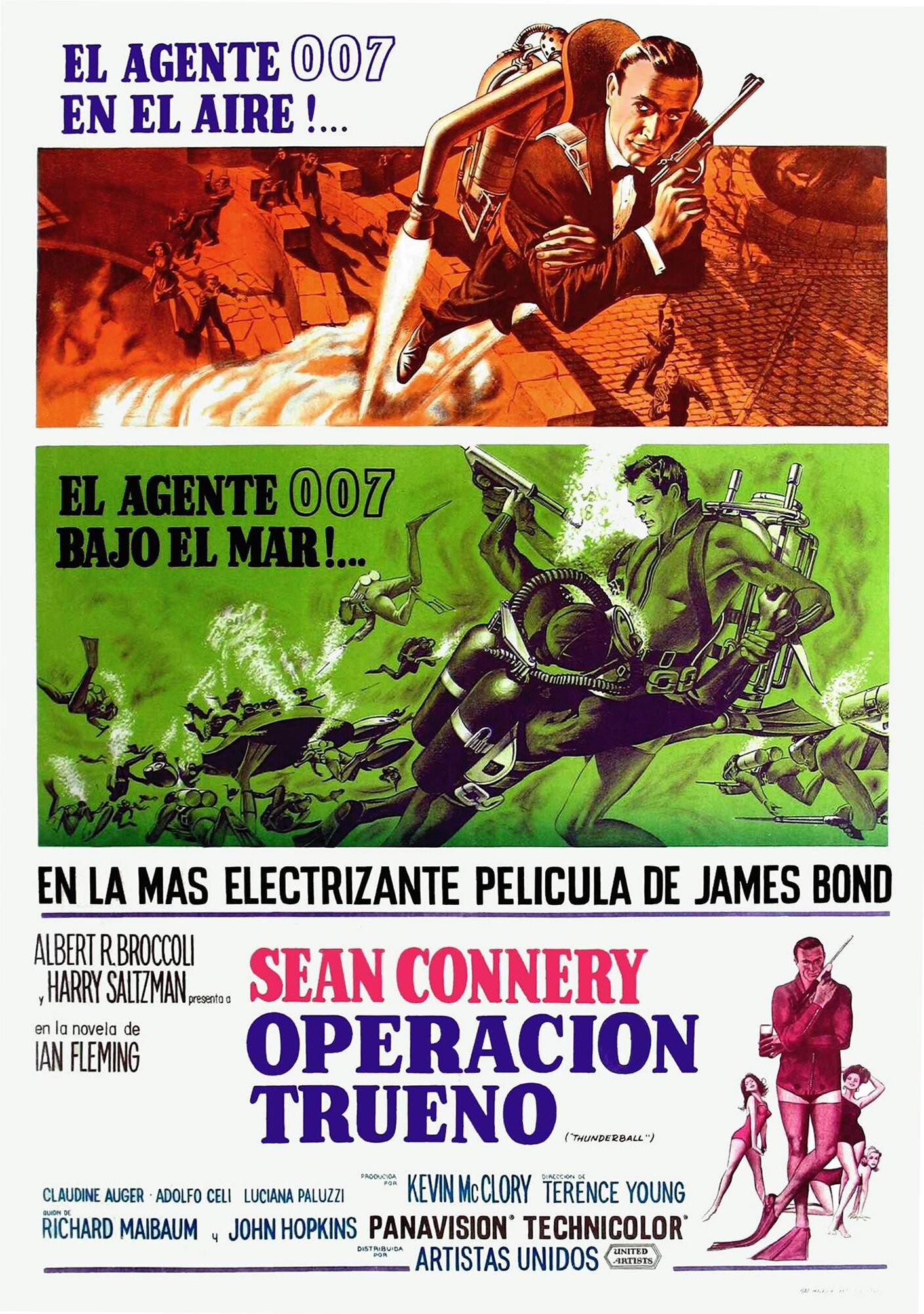 Опытный ум помогает разведчику понять, что пропавший самолёт припрятан около Багам, а никак не в Канаде. Ловкость, мускулы и простое везение помогают ему вычислить злоумышленника и заглянуть ему в бесстыжий глаз. Бонд опять балансирует на грани провала, но, ловко бросаясь фразами, вроде «Я увидел за вами спектр… спектр невезения», включая свой шарм, против которого бессильны дамы с любыми предубеждениями, пользуясь новинками из отдела Q, агент 007 в исполнении Шона Коннери выходит из воды, если не сухим, то победившим точно.