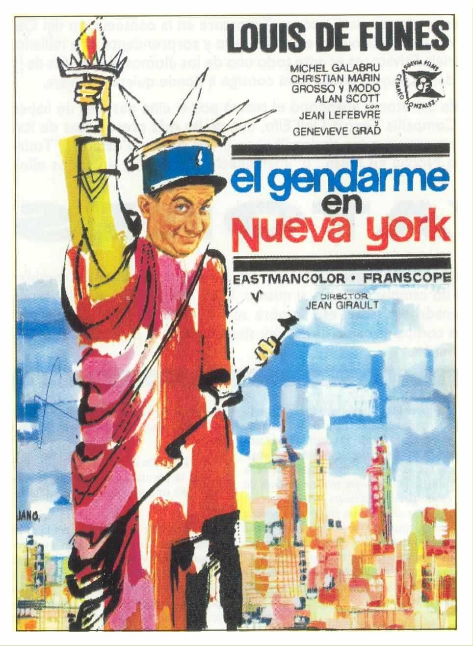 Серию фильмов о приключениях придурковатых жандармов из Сен-Тропе я так просто обожаю (ибо самому по себе великолепному Луи тут ещё и с компанией крупно повезло), самые любимые — «Жандарм и инопланетяне» и, конечно, «Жандарм в Нью-Йорке» !