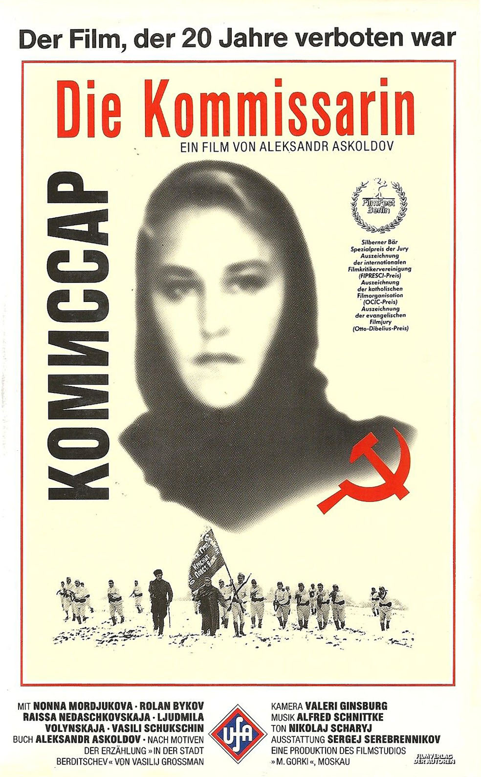 Шедевр Александр Аскольдовова «Комиссар»(1967). Даже и не знаю с чего начать. Начну с того, что этот фильм получил сразу четыре награды на Берлинале’88 (ФИПРЕССИ, золотой медведь, от католической и от ассоциации и от евангелического жюри — про последнюю слышу впервые), четыре российских Ники, огромное количество наград с фестивалей класса B, номинация на Оскар, признан фильмом года в ФРГ(и признание того, что это самый успешный фильм после второй мировой), Швейцарии, Швеции и ГДР (плюс признание кинокритиков этой страны).