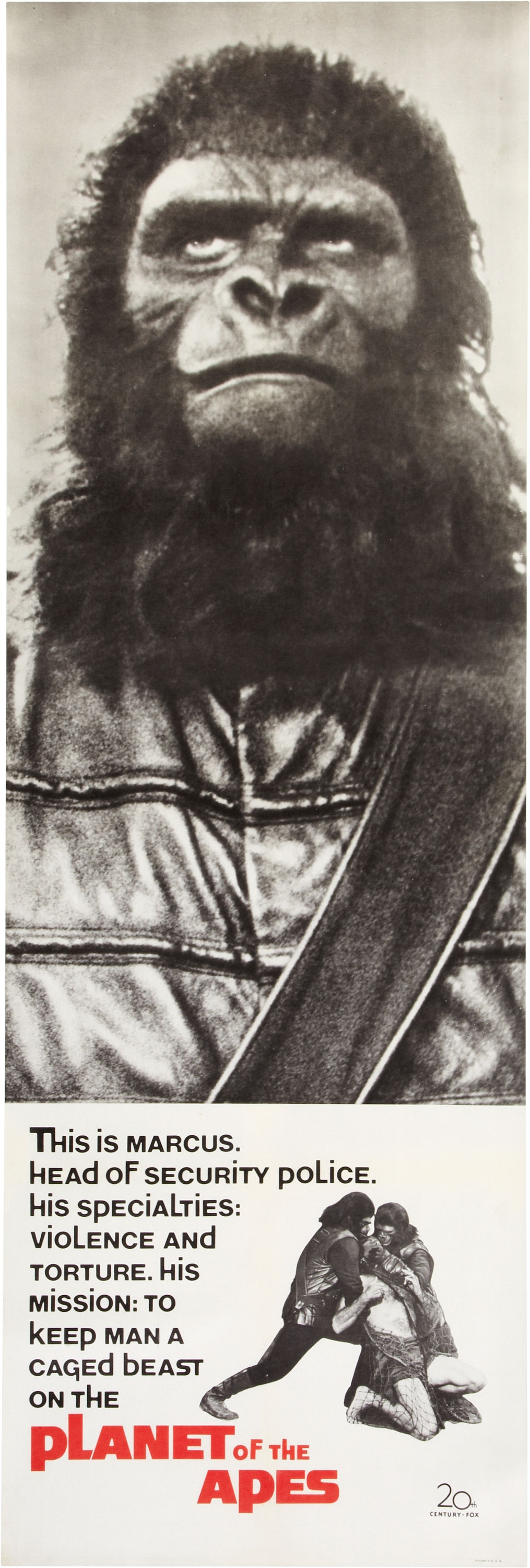 Первая часть знаменитой серии выглядит настоящей классикой фантастики. Помимо детально описанного мира обезьян, фильм в основном акцентируется на моральные и поучительные стороны сюжета. Здесь практически нет экшена, нет динамичных сцен и тонны спецэффектов (если только в начале). Здесь обезьяне — хитрые и жестокие воины не лишённые социальных устоев; а также человек, который отчаянно пытается выжить в новом для него мире. Вопросы, почему монстры (назовём их так, хотя данное определение спорно) так враждебно относятся к человеку, хотя и не лишены их повадок и обычий (правда, на уровне племени) будут преследовать зрителя на протяжении всей картины. А ответом будет… финал.