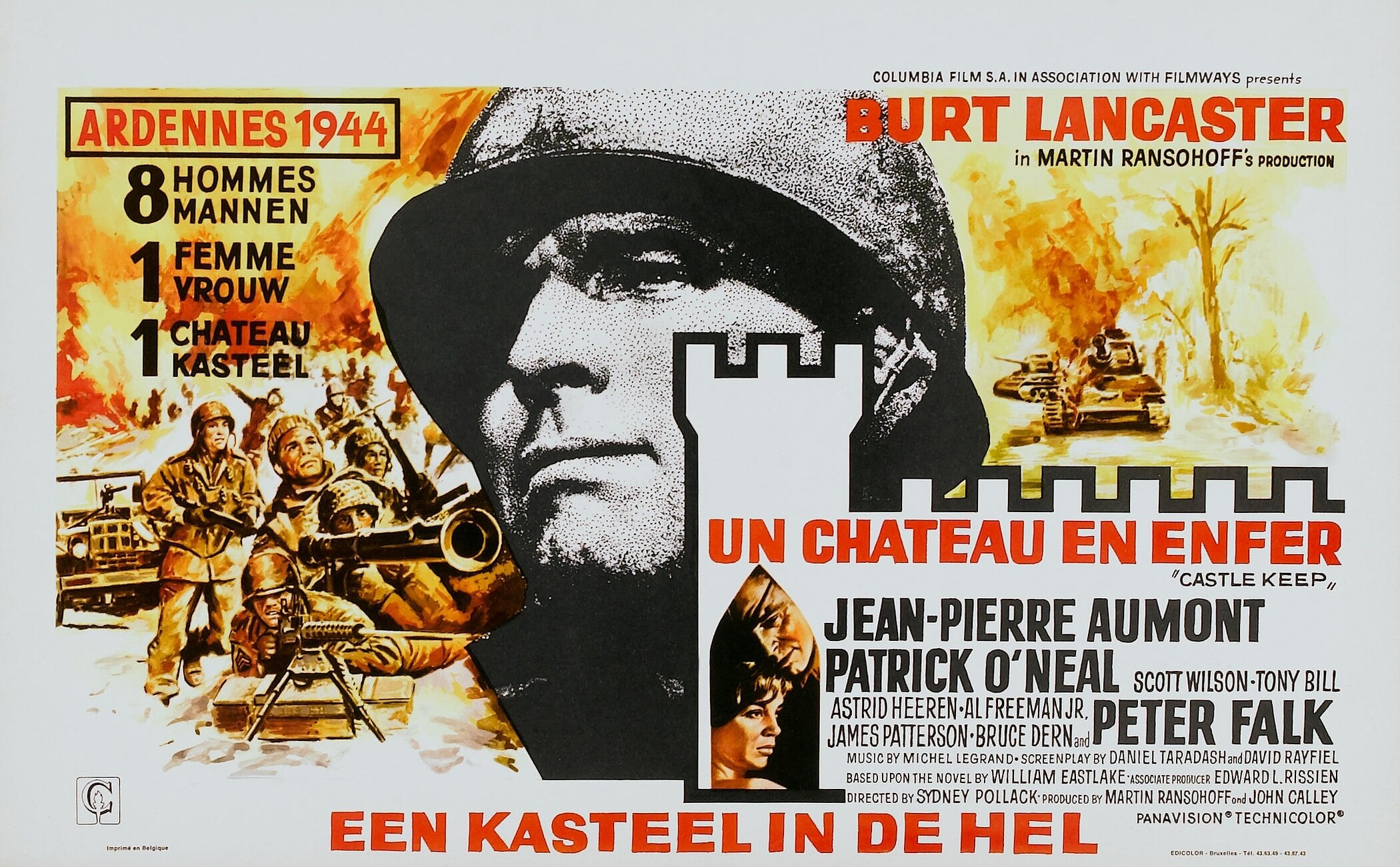 Великолепный и странный фильм «Castle Keep». Странный и сам по себе, своим абсурдом, сюрреалистическими кадрами, черным юмором, переходами от комедии к драме. Странный для творческого метода Сидни Поллака, от которого я привыкла ожидать крепких драм, комедий и шпионских триллеров. А тут — такое, м-м, пиршество для глаза и ума. Не люблю подобных фраз, но все-таки скажу: К. Тарантино с его «Бесславными ублюдками» нервно курит в сторонке.