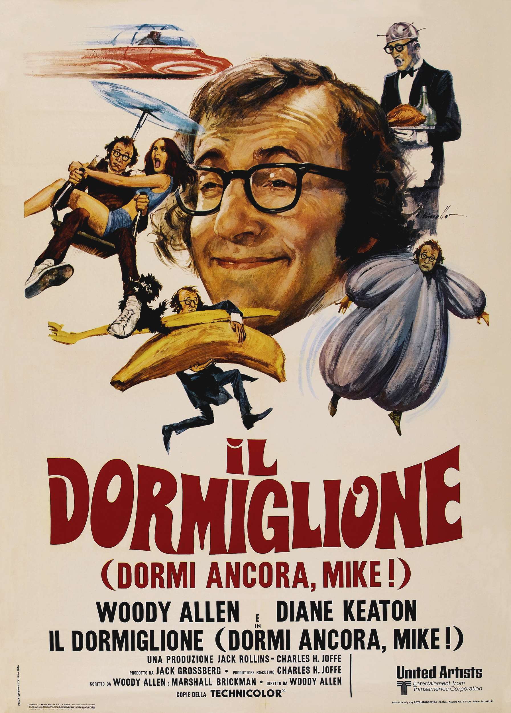 В 70-е гг. великий Вуди Аллен плодотворно трудился на ниве пародийных, совершенно безбашенных комедий и ничуть не задумывался о психоанализе, человеческих отношениях и исследованиях психологии секса. Вуди Аллен именно тогда создал свои самые смешные и беспредельные комедии без особой вдумчивости, без глубокого смысла, зато именно в них он зарекомендовал себя блестящим комедийным актером. Достаточно вспомнить шедевр «Бананы», чтобы это доказать, — одну из самых смешных комедий десятилетия.