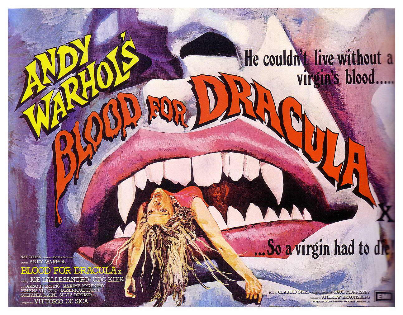 Данный фильм цепляет всякого именем продюсера — Энди Уорхол. Многие даже считают, что сей муж, приложил руку в его создании своим виденьем художника, оттеняя заслугу истинного творца истории в своём истолковании романа Стокера — Пола. Думаю, всем знакомым с творчеством последнего не составит труда отсеять семена от плевел домыслов и слухов.