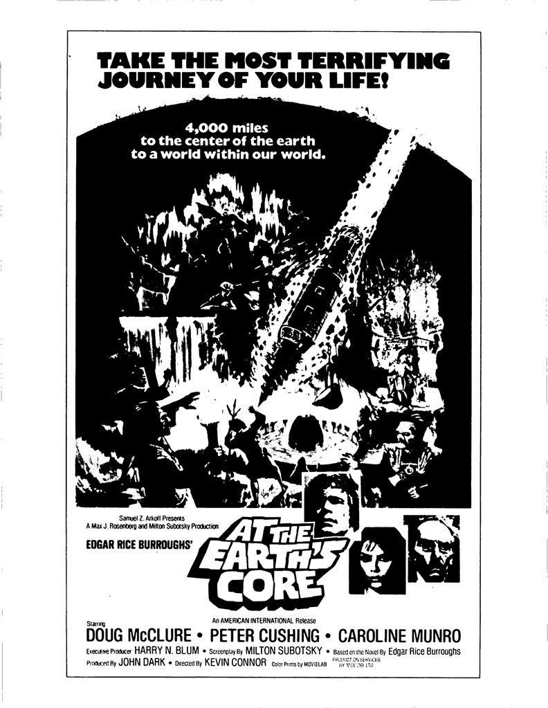Пред нами пара первооткрывателей-изобретателей невиданной механической машины, способной углубиться в девственные недра Земли. Это классик-звезда студии «Hammer» Питер Кушинг (Peter Cushing), изобразивший чудаковатого профессора, комично отбивающегося зонтиком от громадных монстров; удирающего от врагов с острыми копьями, но не забывающего попутно рассматривать удивительные горные породы; и перед лицом гипнотизёра-чудища патриотично гордо заявляющего, что его разум не поддастся чужой воле, ведь он британец! Его более молодой товарищ прекрасно справится с геройским амплуа, сменив широкую плутовскую улыбку пилота бурильной чудо-техники на сосредоточенность поединков доблестного освободителя в разодранной рубахе, как лидера всех угнетённых подземных племён, попутно влюбив в себя местную раскрасавицу. Даг МакКлёр (Doug McClure), тогда находящийся в отличной физической форме, здорово отработает насыщенные экшен-сцены нескончаемых погонь и схваток, что станет залогом дальнейшего сотрудничества в схожих по тематике картинах с режиссёром фильма Кевином Коннором (Kevin Connor), который скоро прочно закрепится в телевизионном формате до сих дней. На роль принцессы аборигенов позвали обаятельную Кэролайн Манро (Caroline Munro), по традиции особо не нуждающуюся в драматических изысках, зато полностью умеющей быть жанровой «красавицей среди чудищ».