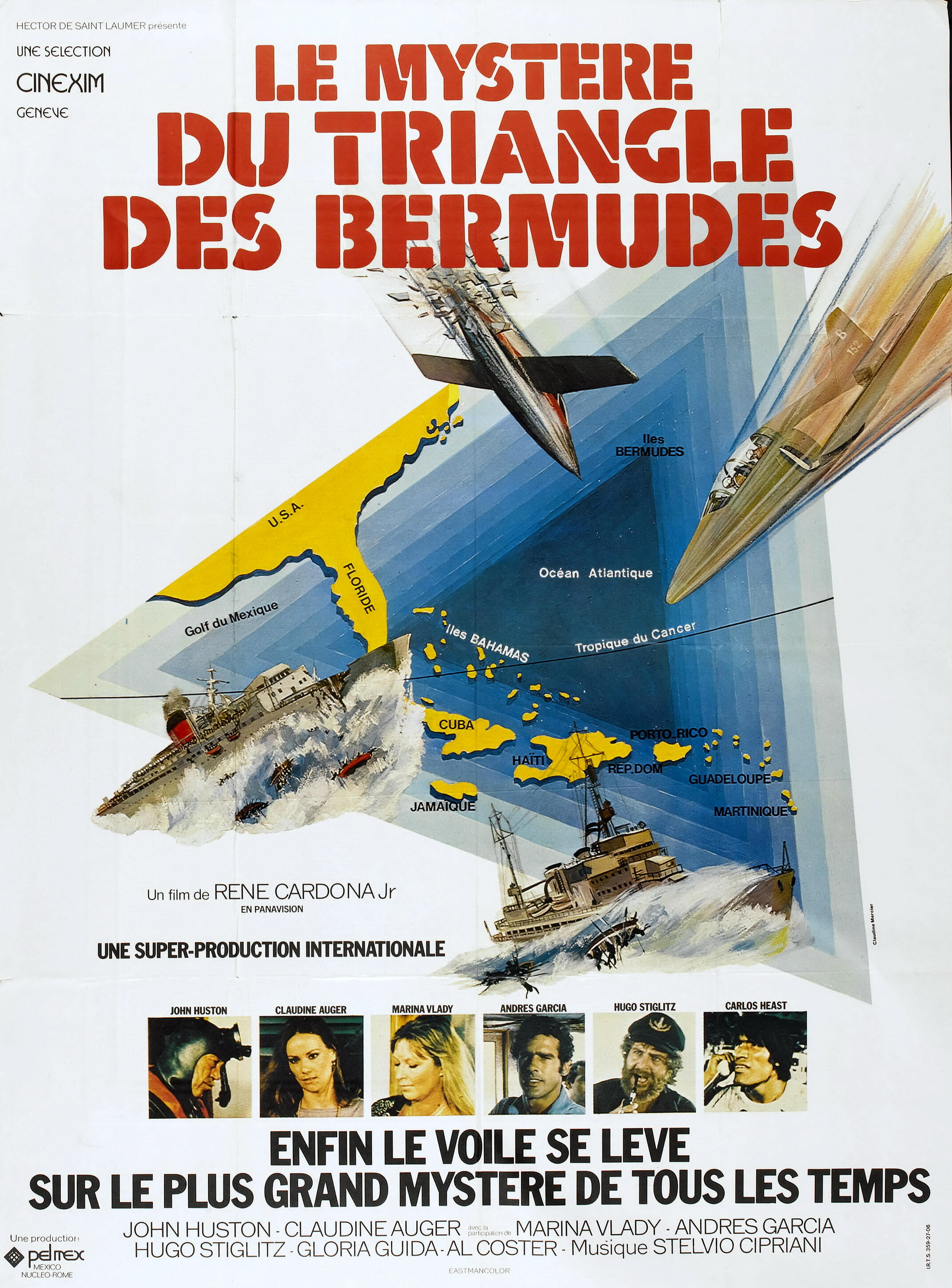 Одну из многих версий о том, что происходит в этом загадочном месте, рассказывает режиссер Рене Кардона-младший в «Бермудском треугольнике», взяв за основу одноименную книгу Чарльза Берлица. Став одним из авторов сценария, а также сопродюсером, Кардона собрал многонациональную команду очень неплохих актеров для воплощения своей идеи. Действие в фильме идет параллельно как бы в двух плоскостях — это поиск пропавшего над океаном самолета и события на яхте посреди океана. Эпизоды чередуются между собой, не связанные друг с другом — разве что по радиоприемнику на яхте слышат о пропаже самолета и пассажиров, не придавая этому особого значения. Эти две сюжетные линии сольются в одну в самом финале картины, сплетя в одну петлю все, что случилось с героями за два часа экранного времени, поставив жирную точку в режиссерской версии тайн Бермудского треугольника. Весьма, кстати, распространенной и популярной.