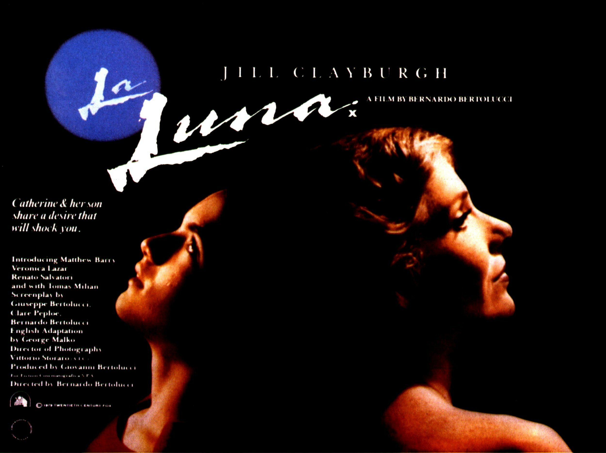 Драма о взаимоотношениях оперной певицы Катерины Сильвери и ее сына Джо, которые приобрели крайне неожиданный оттенок после смерти мужа Катерины и их отъезда в Италию (где, кстати, живет настоящий отец мальчика). Там Джо неожиданно становится наркоманом, при этом между матерью и сыном возникает связь, явно отдающая инцестом. Бертолуччи очень любил запретные темы, да и общая патология самой истории в искусстве вовсе не нова — достаточно вспомнить «Федру» или «Порок сердца» Луи Малля. Дело в том, что к любой теме можно подойти небанально и глубоко, но к «Луне» это совершенно не относится. Это самая настоящая претенциозная муть, которую откровенно трудно и неприятно смотреть — причем не из-за ханжества зрителя, а из-за крайне неудобоваримой, скучной режиссуры и нескладного сценария. Если убрать из фильма тему инцеста, которая, судя по всему, введена только для того, чтобы показать, как женщина, долгие годы лишавшая сына внимания, перешла границы в своей оголтелой и запоздалой любви (что, прочем спорно уже само по себе), то остается крайне неубедительная мелодрама, к которой еще и приплетена «мыльная» линия о потерянных и найденных отцах.