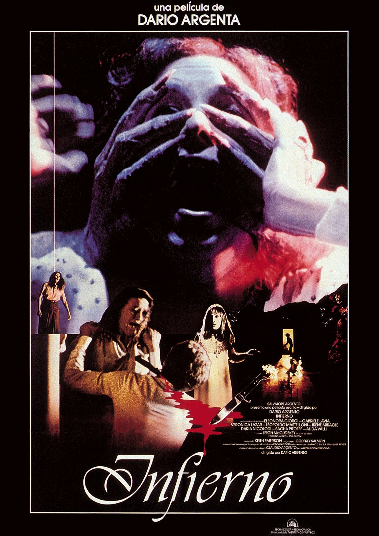 И ещё одна составляющая Инферно, как прекрасного фильма — это музыка. Причём это такой, электронный эмбиент, зачастую довольно резко врывающийся в сцену, но при этом всегда в тему приходящийся. Пишут, что за это отвечал Кит Эмерсон, но я полагаю, что здесь он исполнитель воли Ардженто. В Суспирии саундтрек ведёт себя похожим образом, да и инструменты схожие.