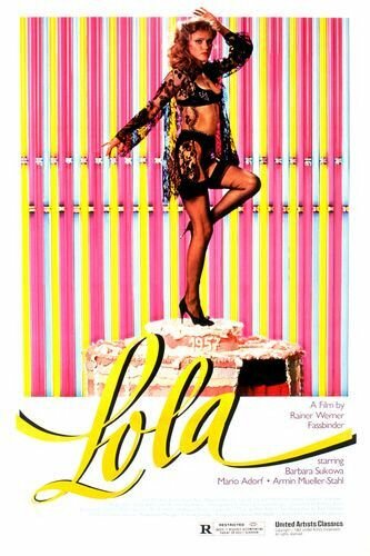 «Лола» (1981), второй фильм в трилогии Райнера Вернера Фассбиндера BRD (ФРГ), технически является ремейком «Голубого ангела» режиссера Йозефа фон Штернберга с великолепной Марлен Дитрих в роли певицы кабаре, по имени Лола-Лола, но картина Фассбиндера гораздо больше, чем ремейк. Онa может уступать в известности «Замужеству Марии Браун», первой части кино-трилогии о женщинах послевоенной Германии. Она может и не быть лучшим фильмом немецкого enfant terrible от кино — эта честь бесспорно принадлежит его магнум-опусу «Берлин Александерплац». Но «Лола» — превосходный, буквально ослепляющий красочностью, фильм. Хотя он вовсе не комедия, или не только и не cтолько комедия, но буйство красок, игра света и дух карнавала создают в нём радостное ощущение нескончаемого праздника кино.
