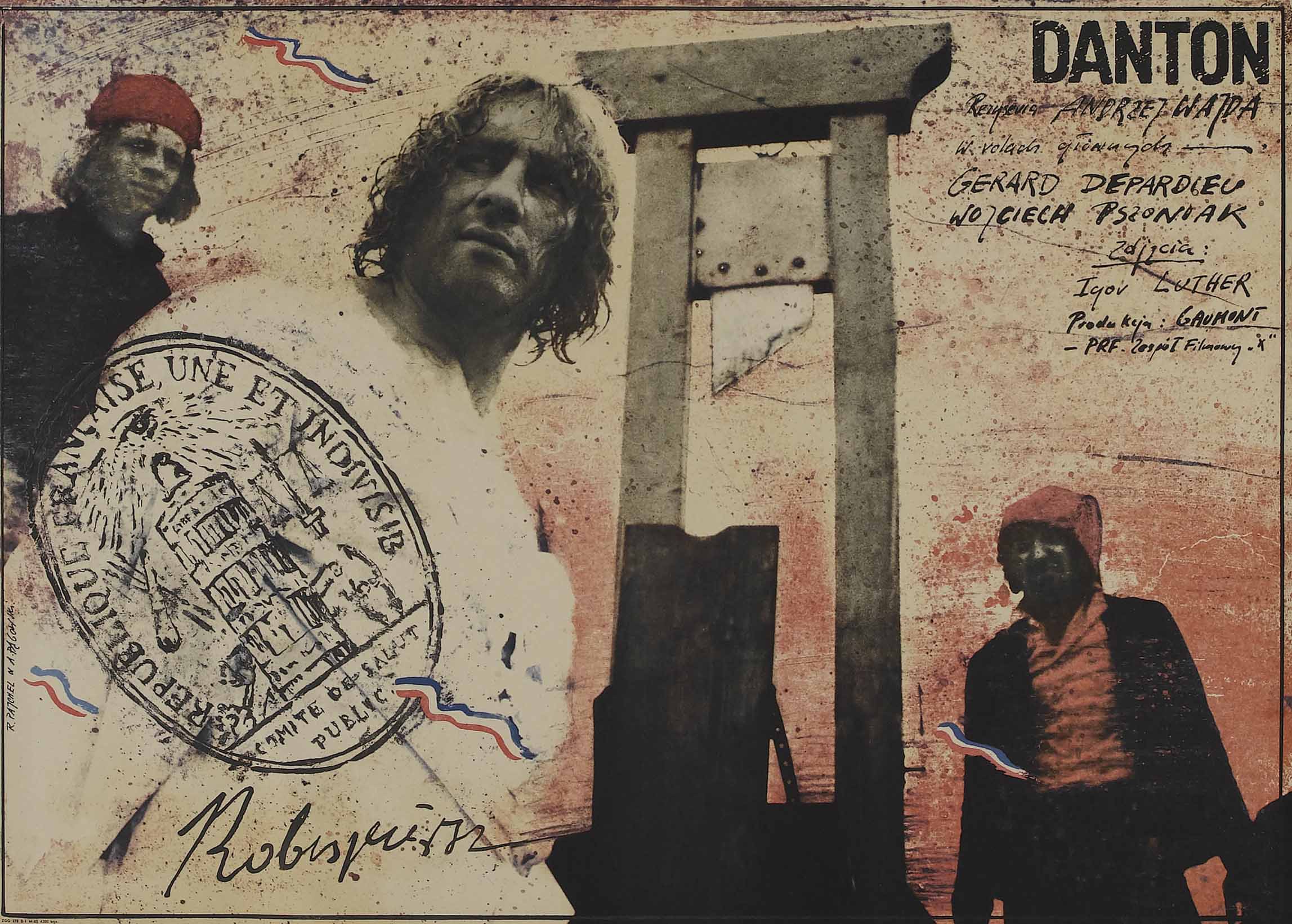 Все актеры в «Дантоне» выложились до конца, но на пределе сыграли, конечно же, Жерар Депардье (Дантон) и Войцех Пшоняк (Робеспьер). Не знаю, возможен ли в принципе лучший Дантон в кино, чем исполненный Депардье, настолько убедительно и сильно он сыграл одного из вождей революции. Дантон и вправду настоящий ее романтик, пусть и не такой наивный, как, скажем, Камилл Демулен, но таки верящий, что она может изменить к лучшему многое. И в то же время своим острым умом (пусть зачастую Дантон и выражает свои мысли в грубоватой простецкой манере) он понимает, куда все это может зайти, какие опасности таит, если перейти черту, за которой революция из попытки перемен к лучшему превращается в средство для претворения в жизнь амбиций, тщеславных желаний, стремления к власти любой ценой, циничного сведения счетов, а также далеко не бескорыстных замыслов. И жестокий террор никогда и ни при каких обстоятельствах не может служить оправданием, во имя каких бы светлых, благородных и далеко идущих целей он не провозглашался. Всю эту гамму экспрессии, воодушевления в своем персонаже Депардье мастерски демонстрирует на экране. Это выражается во всем: слове, жесте, взгляде, движениях — арсенале, который этот актер, как правило, всегда использует на полную катушку, но в «Дантоне» это проявилось, как в никаком другом виденном мною фильме с Жераром. Его Дантон — фигура неоднозначная, трагическая, но на редкость живая и настоящая. На сегодня он для меня пока — одна из лучших ролей Депардье.