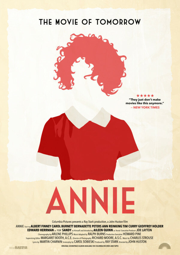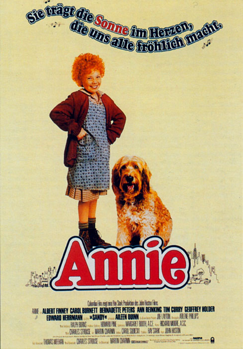 Джон Хьюстон, будучи режиссером разноплановым, не прошел мимо тенденции и снял свою экранизацию комикса «Маленькая сиротка Энни» Гарольда Грея 1924 года, который уже ставился однажды на Бродвее (первый и единственный мюзикл Хьюстона за сорокалетнюю карьеру — ну разве не примечательно?). При этом на роль рыжей непоседы Энни он взял дебютантку Эйлин Куинн, которая, к сожалению, повторила участь многих детей, попавших в кино — бесславно отошла от актерской карьеры (возможно, этому способствовала выигранная «Золотая малина»). Как тут не вспомнить, что роль могла получить Дрю Бэрримор!