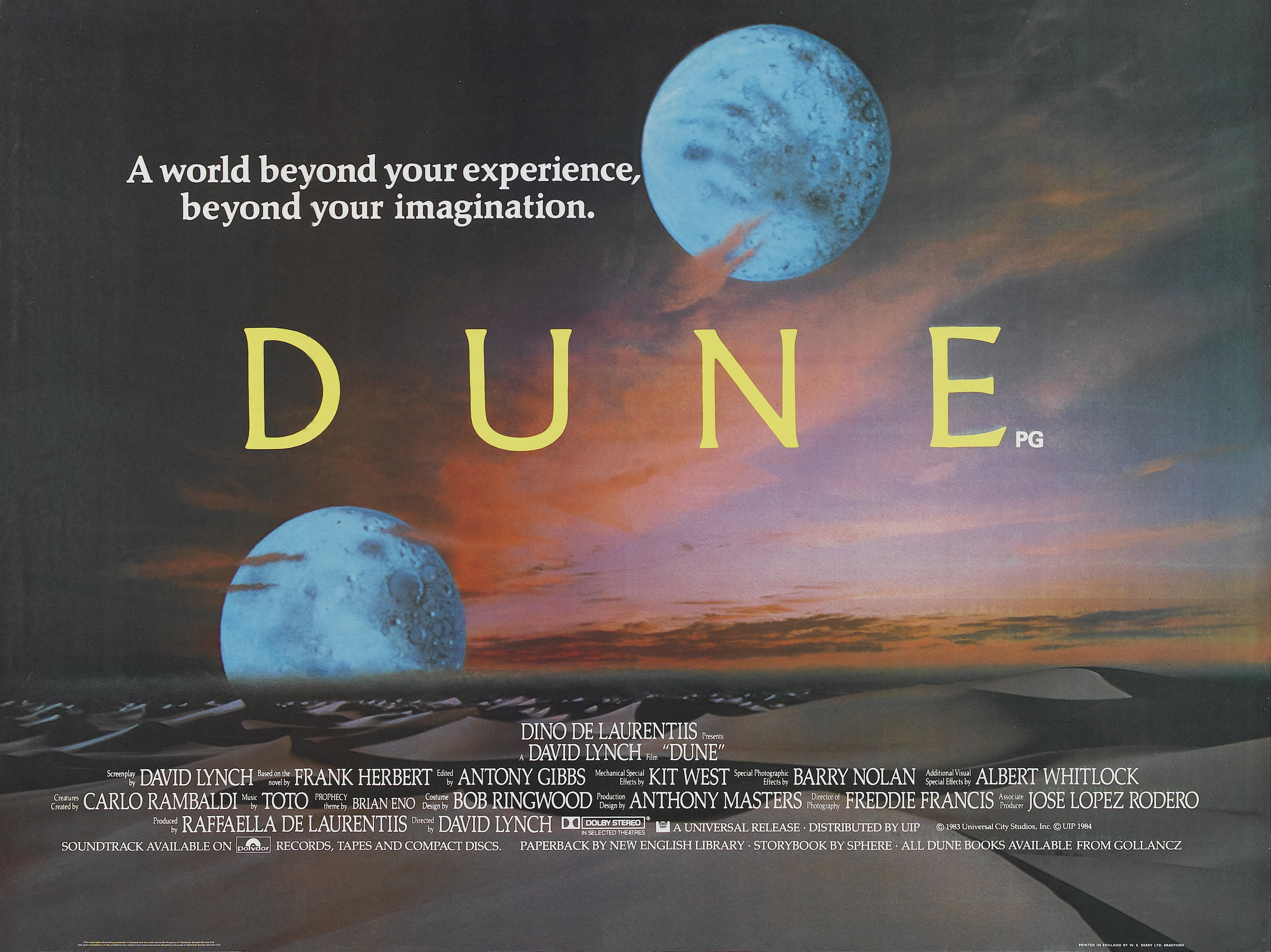 Не знаю, как бы я оценил фильм, если бы не читал книгу. Скорее всего — отрицательно. Но я ее прочел, вот буквально только что, и почти сразу посмотрел новую экранизацию Вильнева, безумно красивую, а потом вот эту старую, и каким-то непостижимым образом старая понравилась больше. Хотя откровенно говоря, во всех деталях, за какую ни возьмись, фильм просто ужасен. Дело, видимо, в книге. Попробую объяснять.