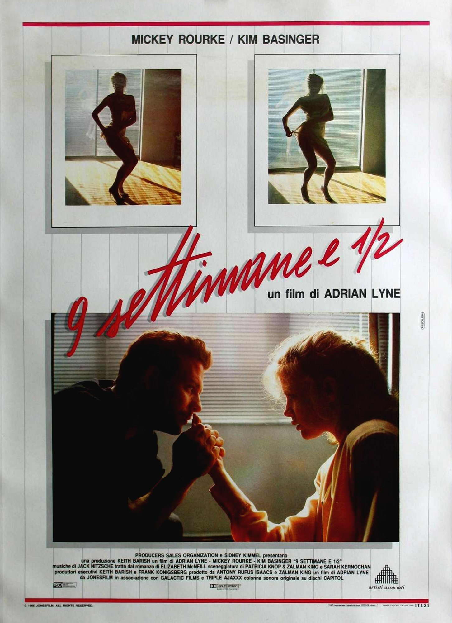 Биржевой игрок (один из архетипов 80-х гг.) Джон в исполнении Микки Рурка встречается на пути у разведённой специалистки картинной галереи Элизабет. И начинается хождение на грани фола в сексе… а может и любви. Вообще-то фильм смотрится попсовым парафразом Бертолуччиевского Танго в Париже, в котором свободный мужчина, ищущий новые границы в любви, сексе и внутри самого человека наталкивается на женские страхи и комплексы или же нежелание подчиняться мужчине.
