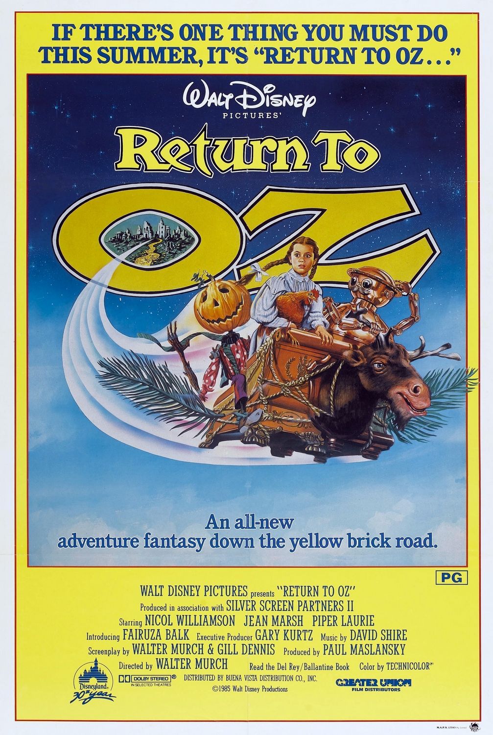 Фильм «Возвращение в страну Оз» сильно отличается от своего предшественника, как внешне, так и по содержанию. И это неудивительно: продолжение вышло в прокат 46 лет спустя, а ответственной за его съемки стала компания «Дисней», а не «МГМ». «Возвращение в страну Оз» до сих пор остается единственной режиссерской работой Уолтера Мёрча — монтажера фильмов Френсиса Форда Копполы. Вот мои впечатления об этом фильме.