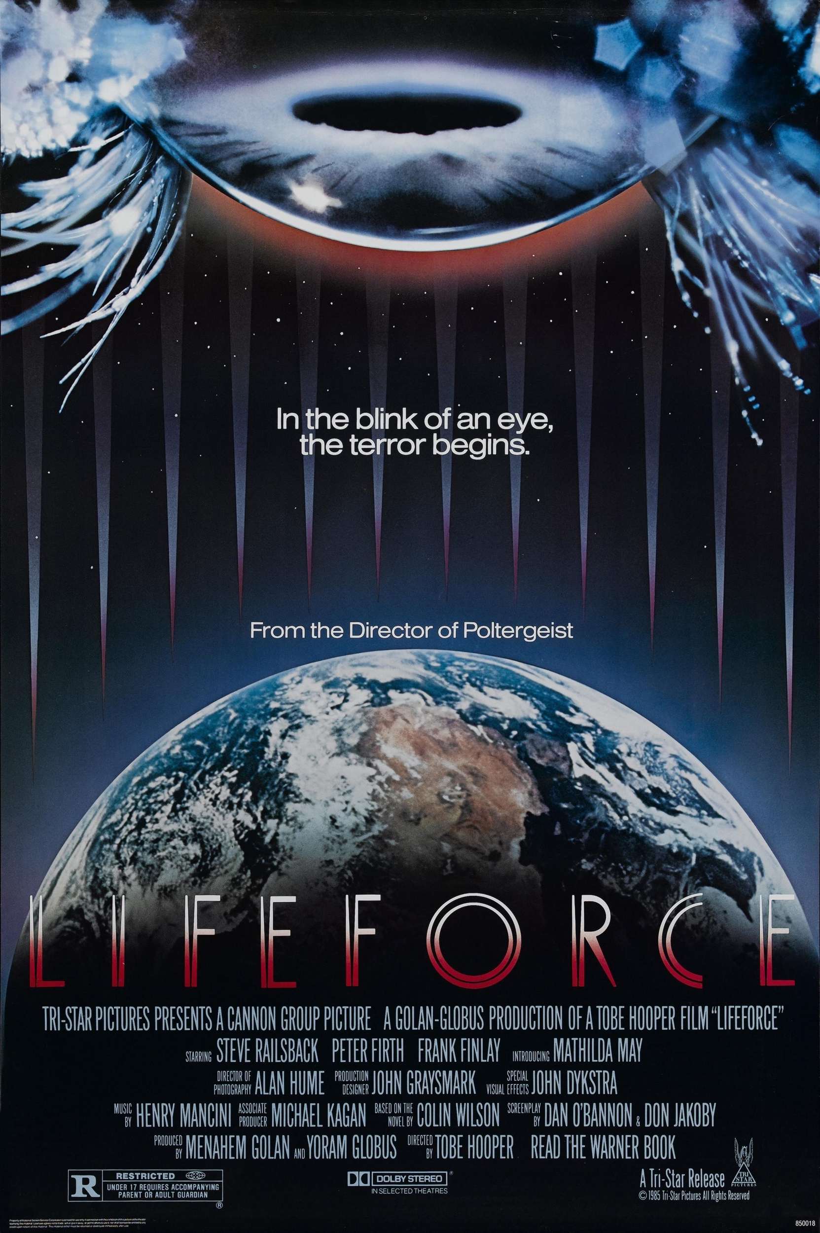 В глаза бросается масштабность постановки. Лента вышла под эгидой кинокомпании Кэннон филмс. И если вы фанат лент периода 80 начала 90х, то Кэннон филмс и имена ее владельцев Менахема Голана и Йорана Глобуса — вам о многом скажут. Ну так вот два этих чувака решили вложится по максимуму и привлечь к производству кучу специалистов высшего порядка что бы фильм выстрелил так мощно и громко, чтоб запомнили как Звездные войны. Они даже наняли Джона Дюкстру, придумывать спецэффекты., раннее он делал эффекты для Звездных войн. Без хороших художников, гримеров и спецэффектов, вся эта постановка не имела бы смысла и зрелищности, так как действие происходит и в космосе и на земле. Причем сюжет о космических вампирах, питающихся жизненной энергией живых существ не может быть представлен зрителю в форме скучных диалогов и условным укусом в шею или что то подобное. Уж поверьте, высасывание жизненных сил из жертв вампирами здесь выглядит довольно зрелищно! Каких то особо жутких, садиских и отталкивающих сцен в этом фильме обнаружено не было, так что господа садисты и любители мяса — проходят мимо! Виды космоса и невероятно колоссальный космический корабль существ из непонятных уголков вселенной действительно впечатляют. Так же впечатляет и громадный список художников, которые делали всю эту сногсшибательную красоту. Уже с начальных титров звучит мощная музыка в исполнении Лондонского симфонического оркестра, как бы намеающая на масштабность предстоящего зрелища. И зрелищность не провисает, по крайней мере в начале.