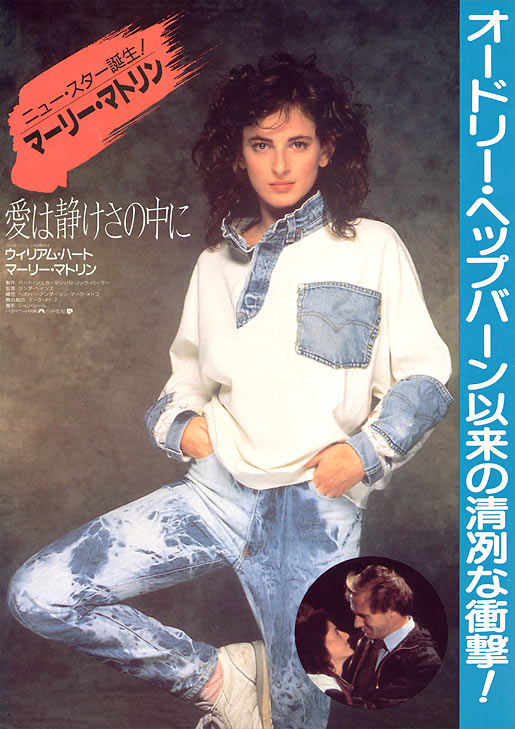 В третьих, актерская игра. Актерская игра выше всяких похвал. Особенно енот. Тьфу ты, особенно Марли Мэтлин:) Помимо того, что ее главная героиня потрясающе красива и обаятельна, она Личность. Девушка, несмотря на свой недуг (глухоту), с характером, с изюминкой, с чертовщинкой. ТАК сыграть в 21 год, без всякого опыта, передать настолько сложную гамму чувств БЕЗ ЕДИНОГО СЛОВА — это даже не талант и не умение — это ДАР. Марли Мэтлин, несмотря на глухоту, получила взамен слуха дар свыше — дар великой актрисы и внешность греческой богини.