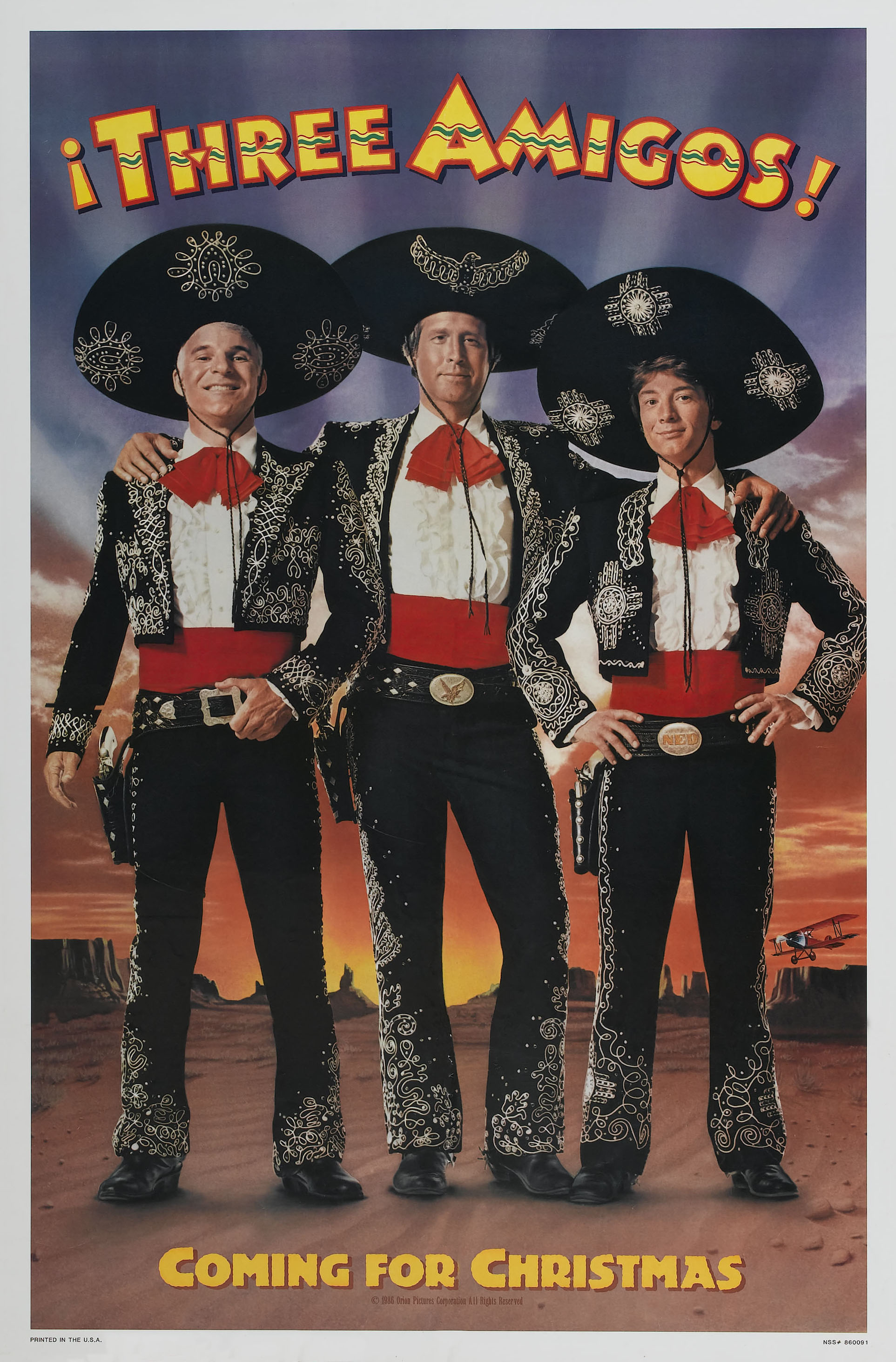 «Три амигос!» — это еще один замечательный проект к которому приложился Стив Мартин не только как ведущий актер, а еще и сценарист. Также этот фильм можно вымышленно соединить с еще одной сатирой на мир кинематографа от Мартина — «Боуфингер». На этот раз все действие происходит в засушливой мексиканской прерии и пропитано неповторимым колоритом края текилы, кактусов и сомбреро. Несмотря на целый каскад шуток, проект привлекает интересным сюжетом и юмором ситуаций. Это, естественно, беспроигрышная ситуация, ведь зрителя всегда прельщали истории о героях оказавшихся не в то время не в том месте. Но и здесь у картины Джона Лэндиса оказывается неожиданный козырь — тройка ведущих американских комиков, так удачно подыгрывающая друг друга. Сразу видно что актеры не пытались затмить друг друга в кадре, а умело дополняли коллег. Но все равно на первый план местами выходил именно Стив Мартин. Наверное из-за привилегий, описанных в сценарии.
