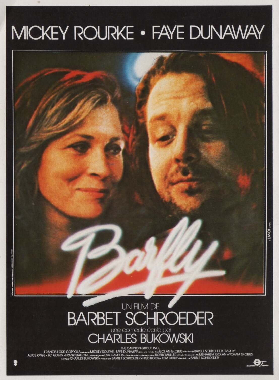 Теперь об исполнителях. Режиссер твердо поставил перед собой задачу ничего не испортить и, отдадим должное, твердо ее решил. Происходящее показано единственно уместным планом — беспристрастным планом пьесы — бары, квартиры-гадюшники, редко улица; во всех интерьерах разыгрываются маленькие драмы, суммирующиеся в этакий сюжет за жизнь. Микки Рурк, блестяще воплощающий все, за что бы ни брался, здесь, имея возможность еще и опереться на прототип, сыграл и вовсе нечто невиданное. Как-то порою даже жутко смотреть на человека, который может все. Фэй Данауэй досталось амплуа подающего, которое она отыграла с филигранным мастерством и филигранной… скромностью. Правда, под конец, словно не удержавшись, зажгла-таки, оправдав сразу и саму роль и свое непосредственное в этой роли участие. Остальных можно уверенно отнести ко второму плану, да и подытожить, что такой мощный «фон» редко где встретишь. Такие они яркие и как же друг другу подходят — врачи «скорой», проститутки, алкаши… Отдельно, словно то ли просто булдыган, то ли розетский камень, стоит Джек Нэнс — отрада киномана.