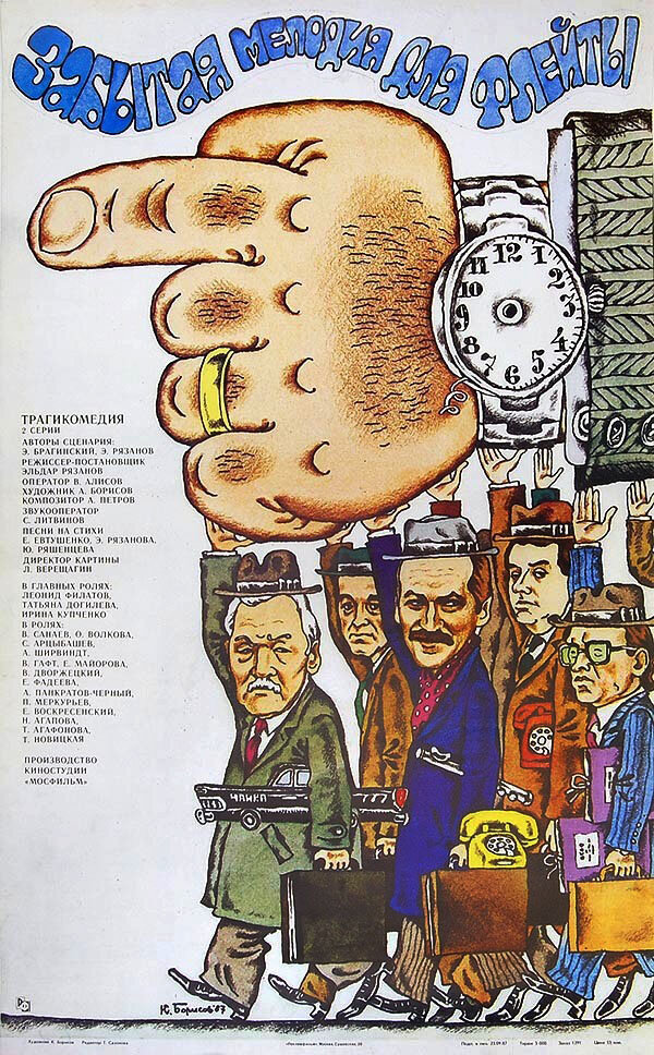 Бюрократия в стране существовала всегда. В эпоху расцвета советского кинематографа не принято было демонстрировать малоприглядные нюансы деятельности чиновников различного ранга. Однако с наступлением перестройки, ранее запретное стало разрешенным, на роток перестали накидывать платок, и даже маститые режиссеры не отказались от возможности ставить кино, где на первый план вышел реальный, а не завуалированный быт граждан. К концу 80-х годов Эльдар Рязанов несколько отошел от жанра лирической комедии и все чаще стал задумываться о том, что главному герою совсем не обязательно быть рафинировано честным. Куда интереснее преподнести зрителю персонажа, который живет в тех же реалиях, имеет те же человеческие пороки и наделен таким количеством граней, что сходу и не определишь, положителен ли он вообще. Роль человека, разрывающегося между карьерой и чувствами прекрасно подходит Леониду Филатову. Каждое появление этого невероятного дарования артиста на экране даровало советскому зрителю героя, которого в течение фильма неоднократно хочется как жалеть, так и презирать. Пика подобного актерского двуличия Леонид Алексеевич добился в исключительно грустной и такой пронзительной «Забытой мелодии для флейты» мэтра Рязанова.