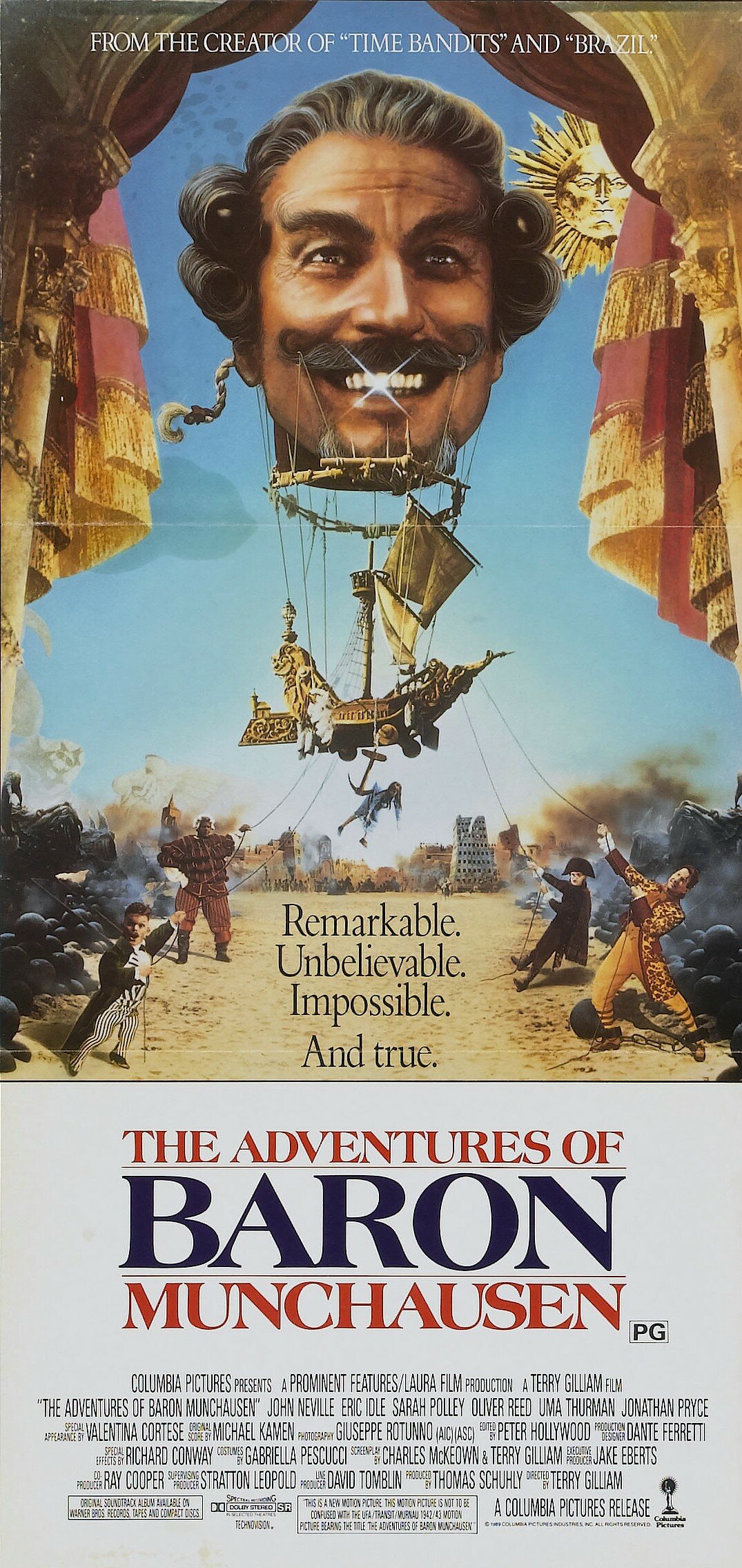 Робин Уильямс в роли Летающей головы короля Луны, молодая обнаженная УмаТурман в роли Венеры, Оливер Рид в роли Вулкана, и даже камэо Стинга…