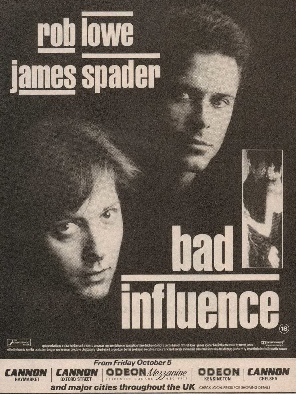 Персонаж Спейдера с таким искреннем восторгом бросается изучать свою тёмную сторону, что это даже слегка пугает. К счастью дошёл он до строго определённой черты, по пути превратившись из безобидного яппи-задрота в решительного мужика. Красавчику Робу Лоу до какого-нибудь приличного дьявола — как до Канады пешком, но всё-таки у него получился очень обаятельный и харизматичный социопат. Попался бы такой на глаза спец-службам, из него бы идеального Джеймса Бонда сделали, а так увы, только и остаётся что со всякими простачками играться. Жаль только не стали объяснять как он дошёл до жизни такой, типа — ну псих и псих, чего на него время тратить, какие-то мотивации придумывать. Ещё тут юные Мария Кросс и яркая брюнеточка — сестра Билли Зейна, в типичных для 90-ых, ролях красивых куколок, чтобы оттенить главных героев.