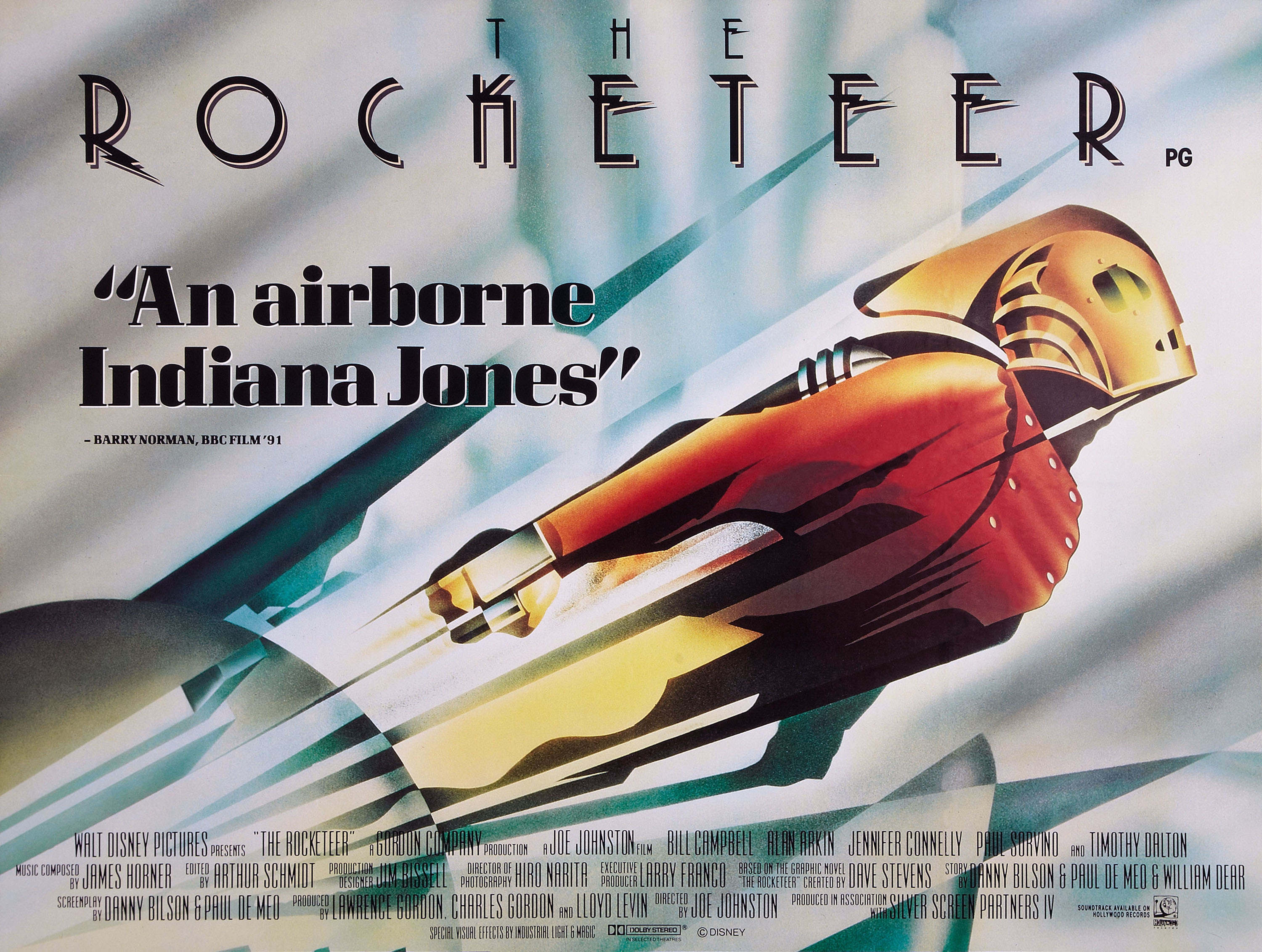 Что же до фильма, то хотелось бы отметить отличный подбор актёров. Билл Кэмпбелл прекрасно вписался в образ Ракетчика, да и внешне очень похож. Порадовал Алан Аркин в роли его друга Пибоди. Дженнифер Коннелли мне всегда нравилась, несмотря на то, что фильмов я с ней толком и не глядел, а тут — просто само совершенство. Тимоти Далтон — самое то в отрицательном образе привлекательного, но коварного Невилла Синклера, он просто шикарен в этой роли.